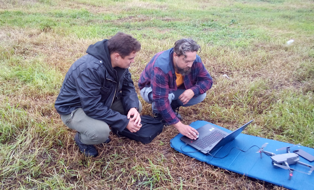 В.В. Морозов и А.Л. Смирнов в процессе подготовки квадрокоптера к запуску