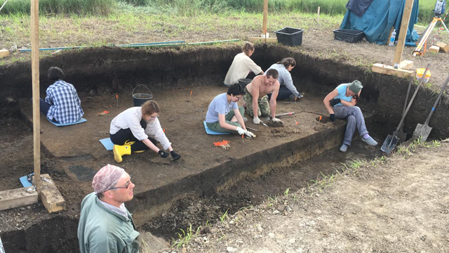 На территории ГАО Минино 2 в июле были проведены раскопки двух площадей. Первая из них (участок 6) в восточной прибрежной части памятника, начатая в 2018 г., была прирезана к участку 5, раскопки которого производились в 2000–2001 гг. Вторая – в суходольной (жилой) части стоянки – была заложена на продолжении участка 2, вскрывавшегося в 2006 г.