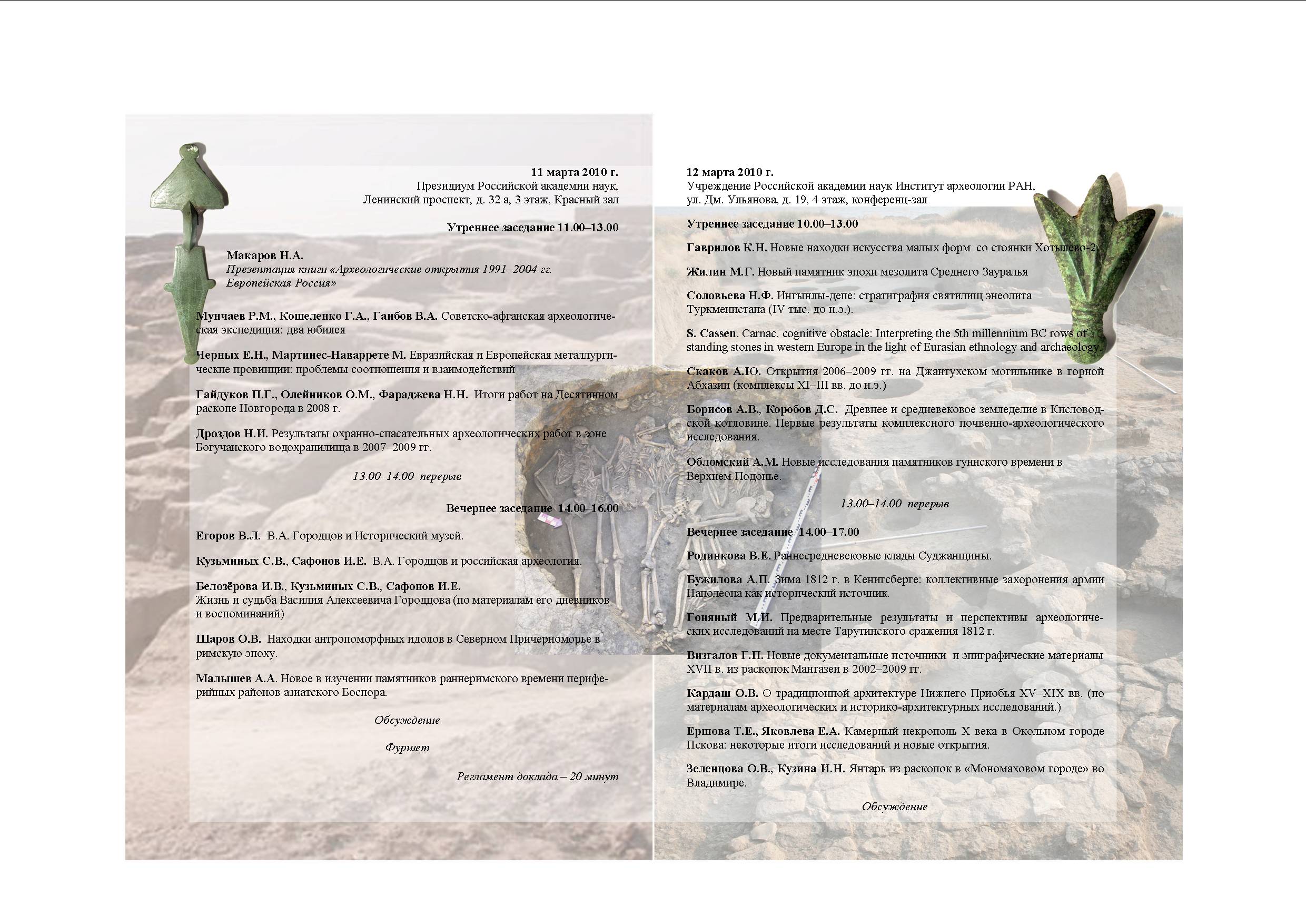 Конференция "Археологические исследованияв России: новые материалы и интерпретации" (ИА РАН, 11-12 марта 2010)