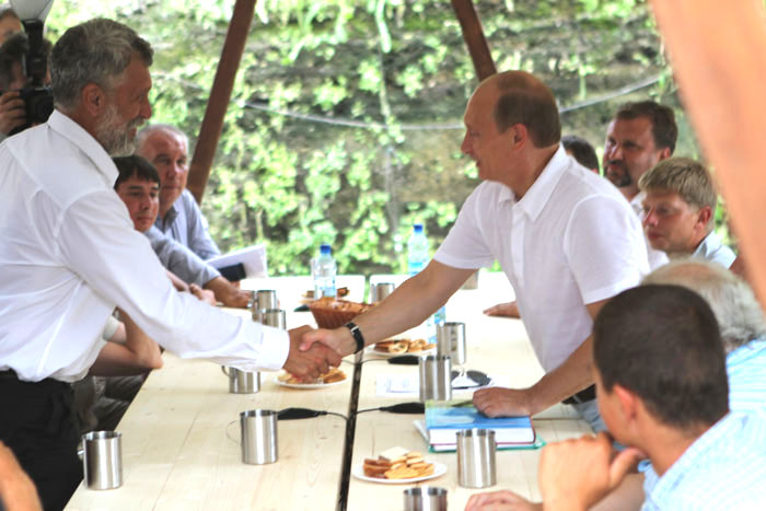 «Объясните, мне, как вы находите в этой земле берестяные грамоты, я бы, наверное, не смог…» - начал разговор Председатель Правительства. «Технология поиска простая – тщательная переборка земли руками, и никаких способов модернизировать этот тяжелый труд пока не изобретено», – отвечали археологи. Новгородцы рассказали В.В. Путину о некоторых новых полевых проектах, связанных с изучением новгородских древностей, Н.А.Макаров коротко проинформировал об общей ситуации, сложившейся в сфере изучения и охраны археологического наследия. Далее участники встречи перешли к обсуждению многочисленных проблем, волнующих археологическую корпорацию: подготовка археологов в вузах (российские археологические школы имеют мировую известность, но специальность «археология» отсутствует в перечне направлений высшего профессионального образования, а сроки археологических практик сокращаются), борьба с незаконными раскопками и расхищением археологических ценностей (Председатель Правительства предложил думской фракции «Единой России» вместе со специалистами подумать о совершенствовании нормативной базы в этой сфере), ратификация Россией Европейской конвенции об охране археологического наследия, создание специализированных хранилищ для археологических коллекций (сегодня многие музеи отказываются принимать коллекции из-за отсутствия необходимых площадей), выделение средств для установления границ территорий объектов археологического наследия и правового режима использования территорий в указанных границах, трудоустройство молодых археологов и пенсионное обеспечение ученых. Обсуждались и новгородские проблемы – музеефикация открытых археологами остатков храмов XII-XV вв. в новгородской округе, мониторинг влажного культурного слоя. Подводя итоги беседы, В.В. Путин еще раз отметил значение археологического наследия и его изучения для понимания истории России и формирования исторического самосознания и заверил археологов, что их предложения будут внимательно рассмотрены.