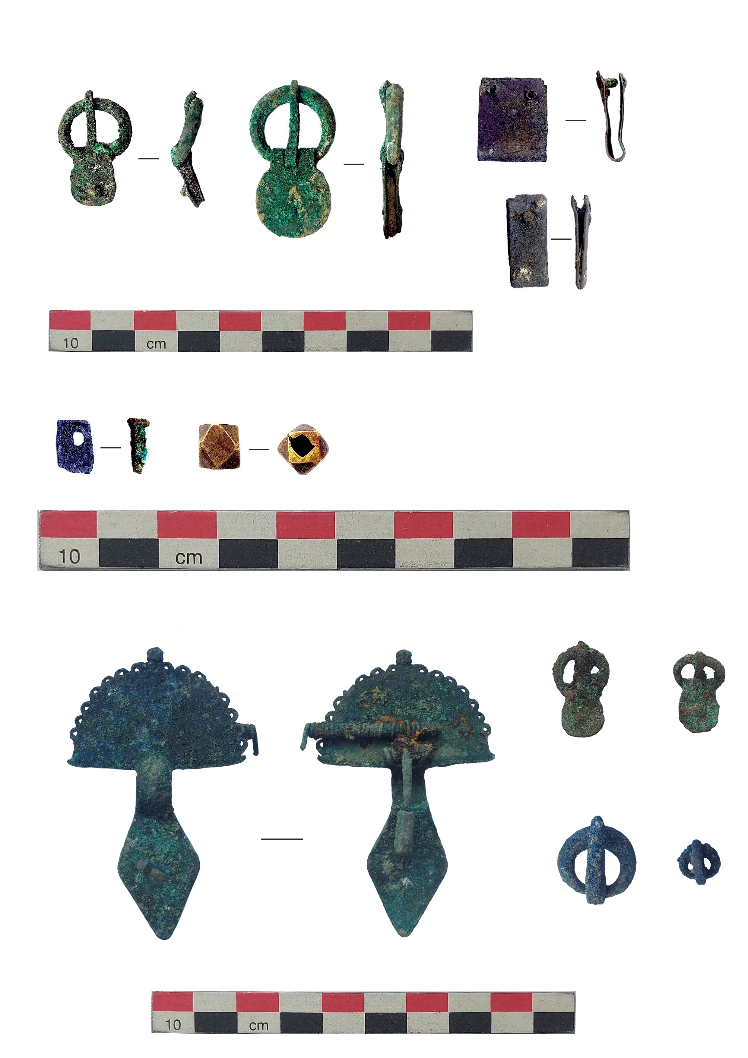 Находки из катакомбных погребений кур. 14 (сверху и в центре) и 15 (снизу) могильника Левоподкумский 1. Фото А.Е. Глазыриной