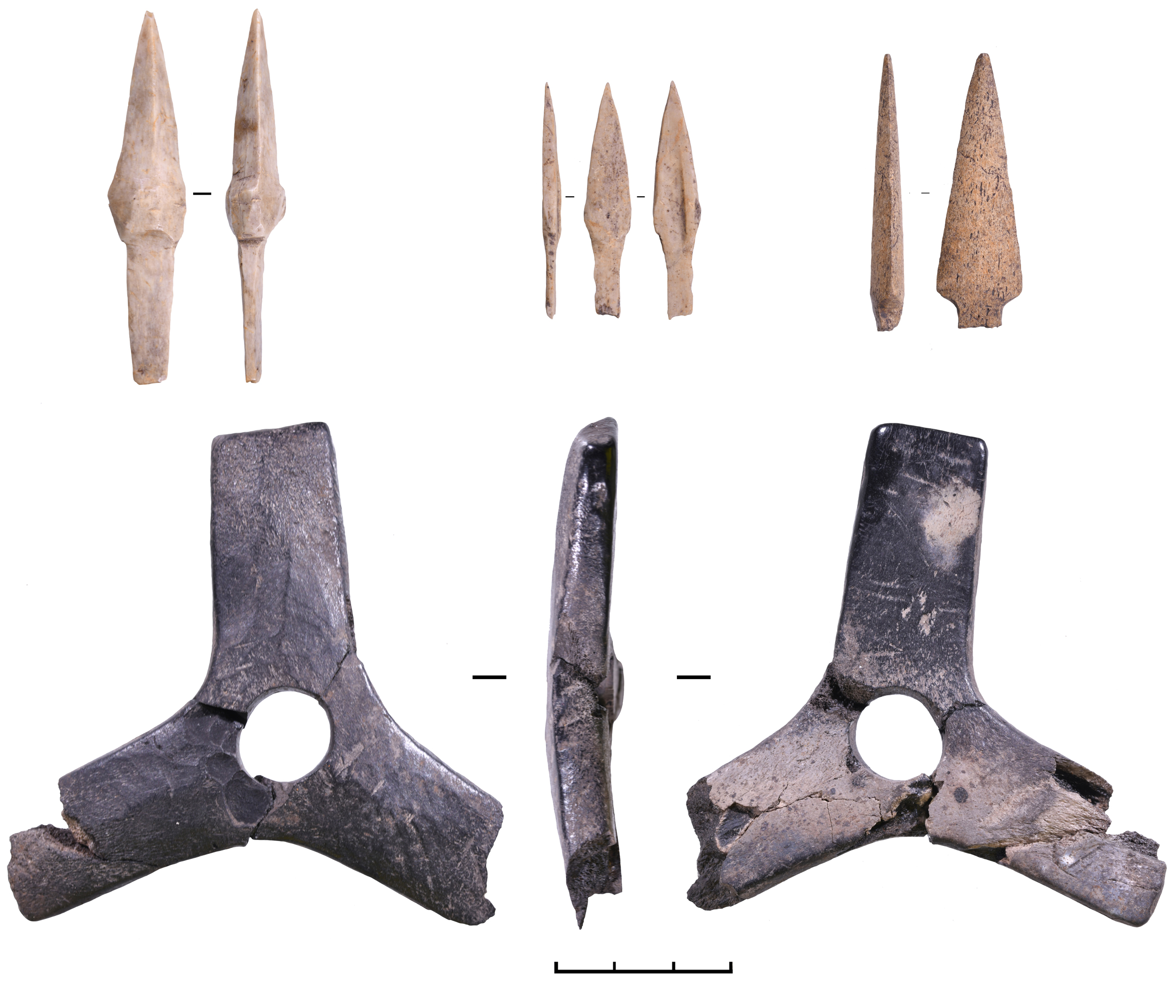 Костяные наконечники стрел и роговой предмет раннего железного века