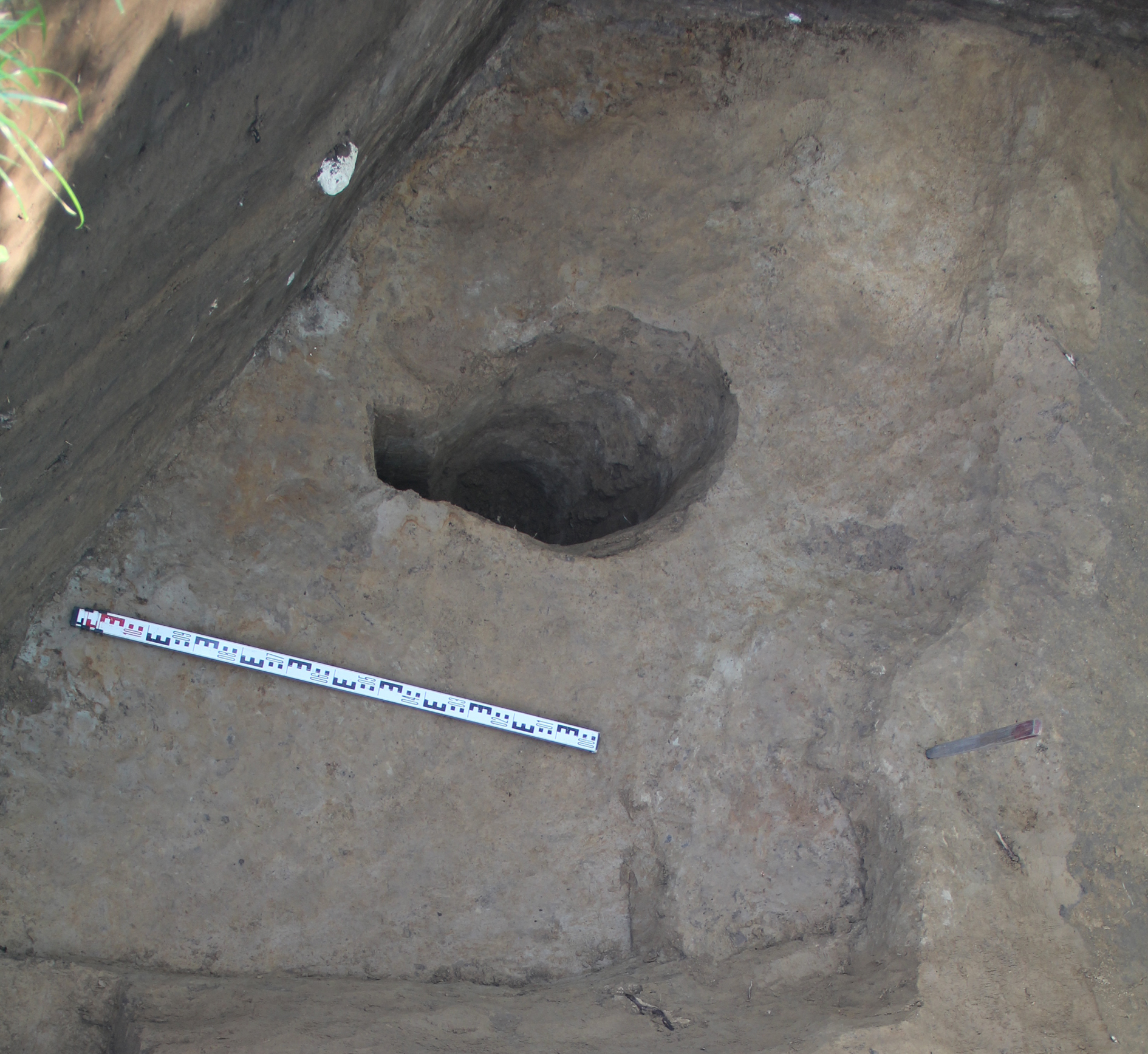 Раскоп на рву детинца Ростиславля. Яма от столба на дне рва