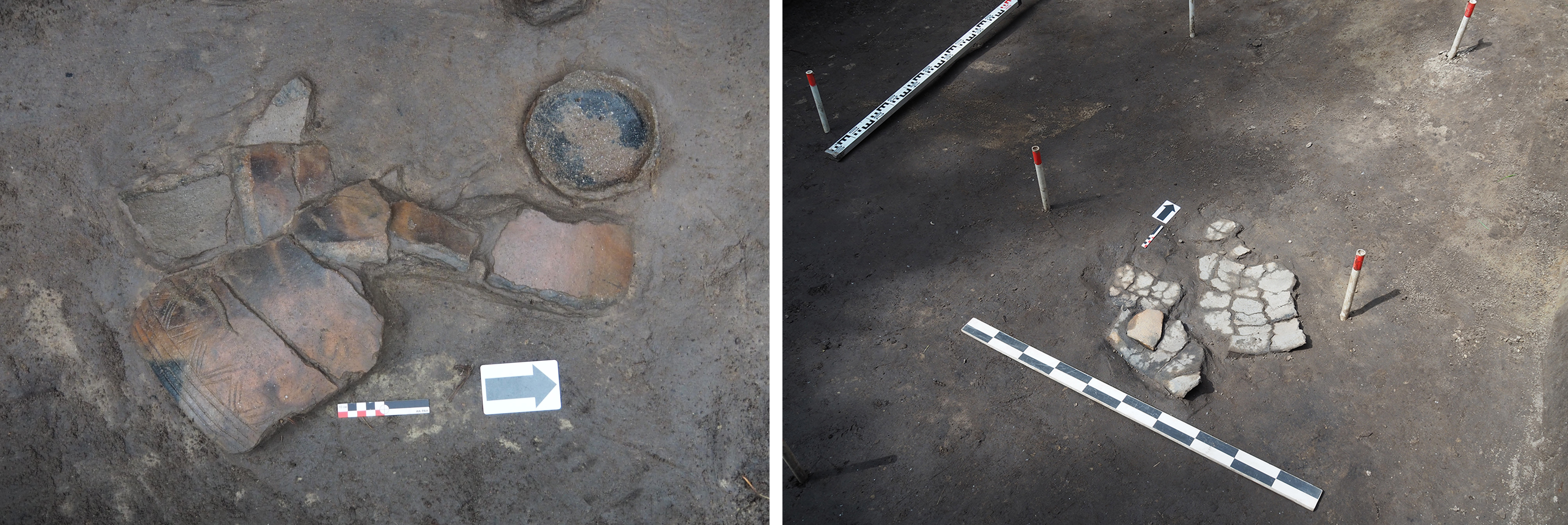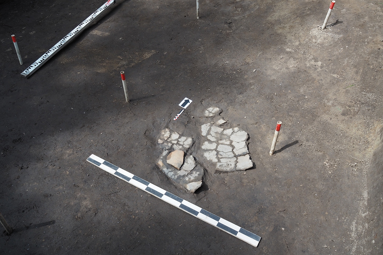 Калининградская область, Гурьевский район, поселение Ушаково-1. Развалы сосудов с нижнего уровня культурного слоя
