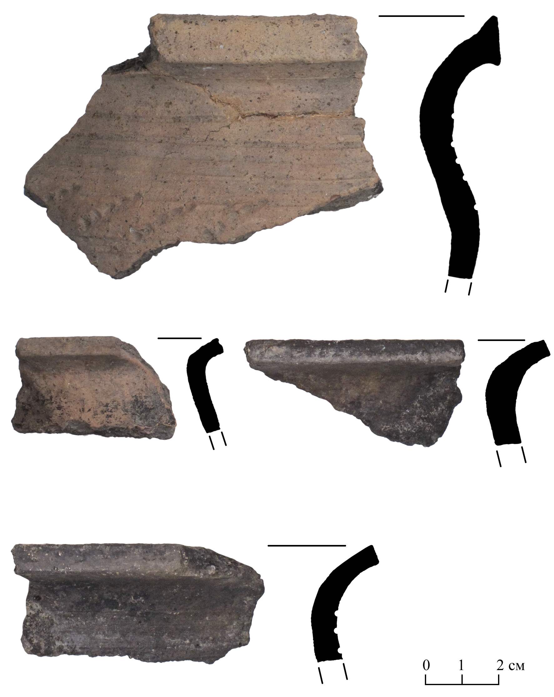 1, 2 – фрагменты круговой керамики из верхних ярусов культурного слоя.