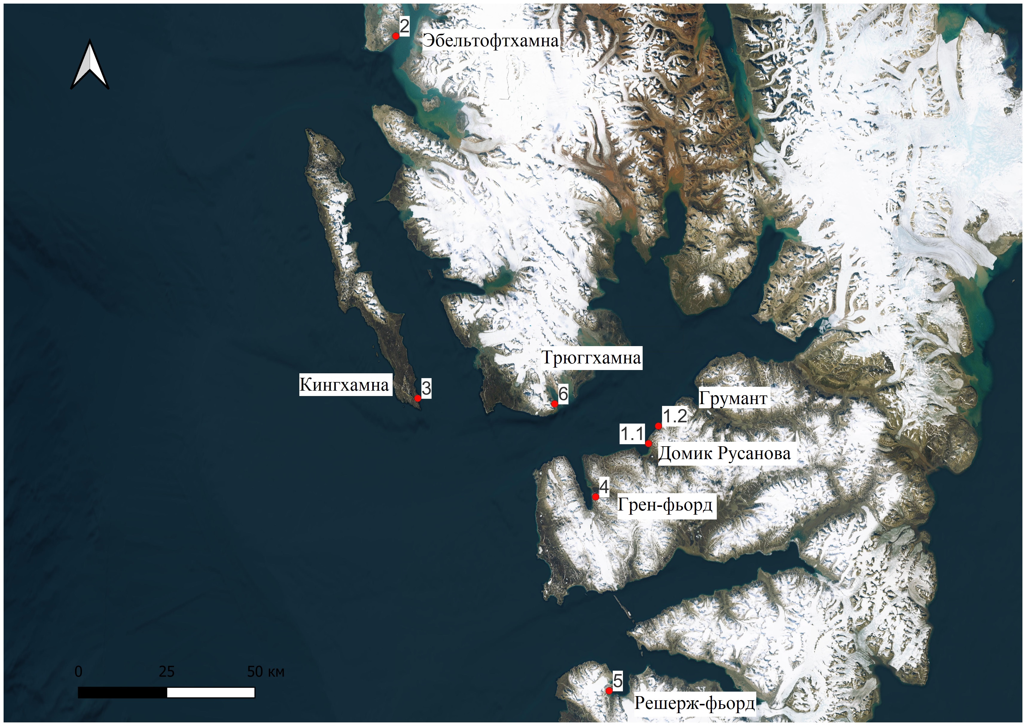 В сезоне 2025 г. экспедиция работала в следующих районах Шпицбергена: