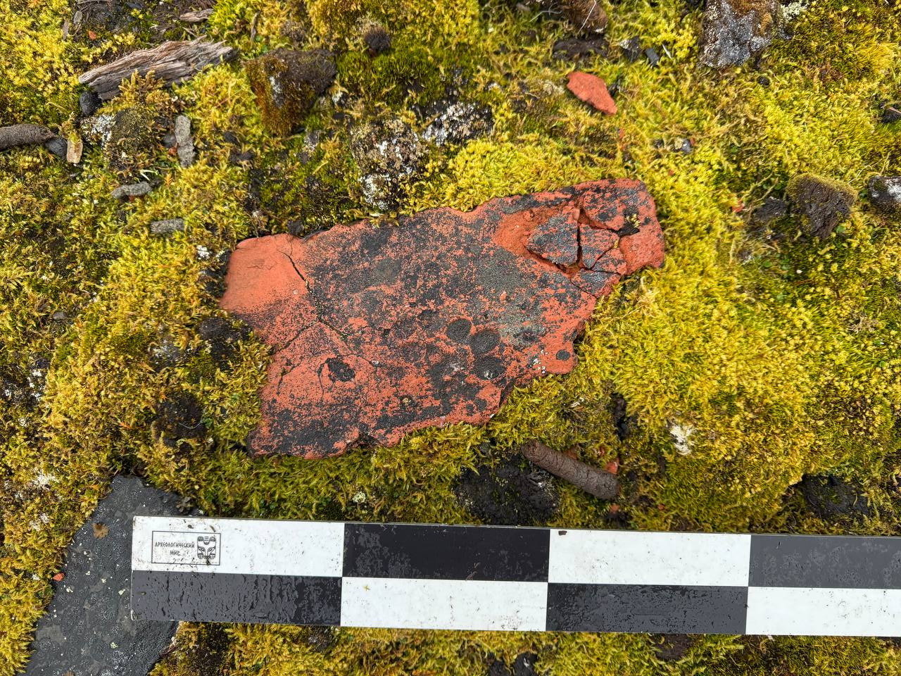 Находки со становища Эбельтофтхамна: Обломок кирпича с отпечатком кошачьей лапы