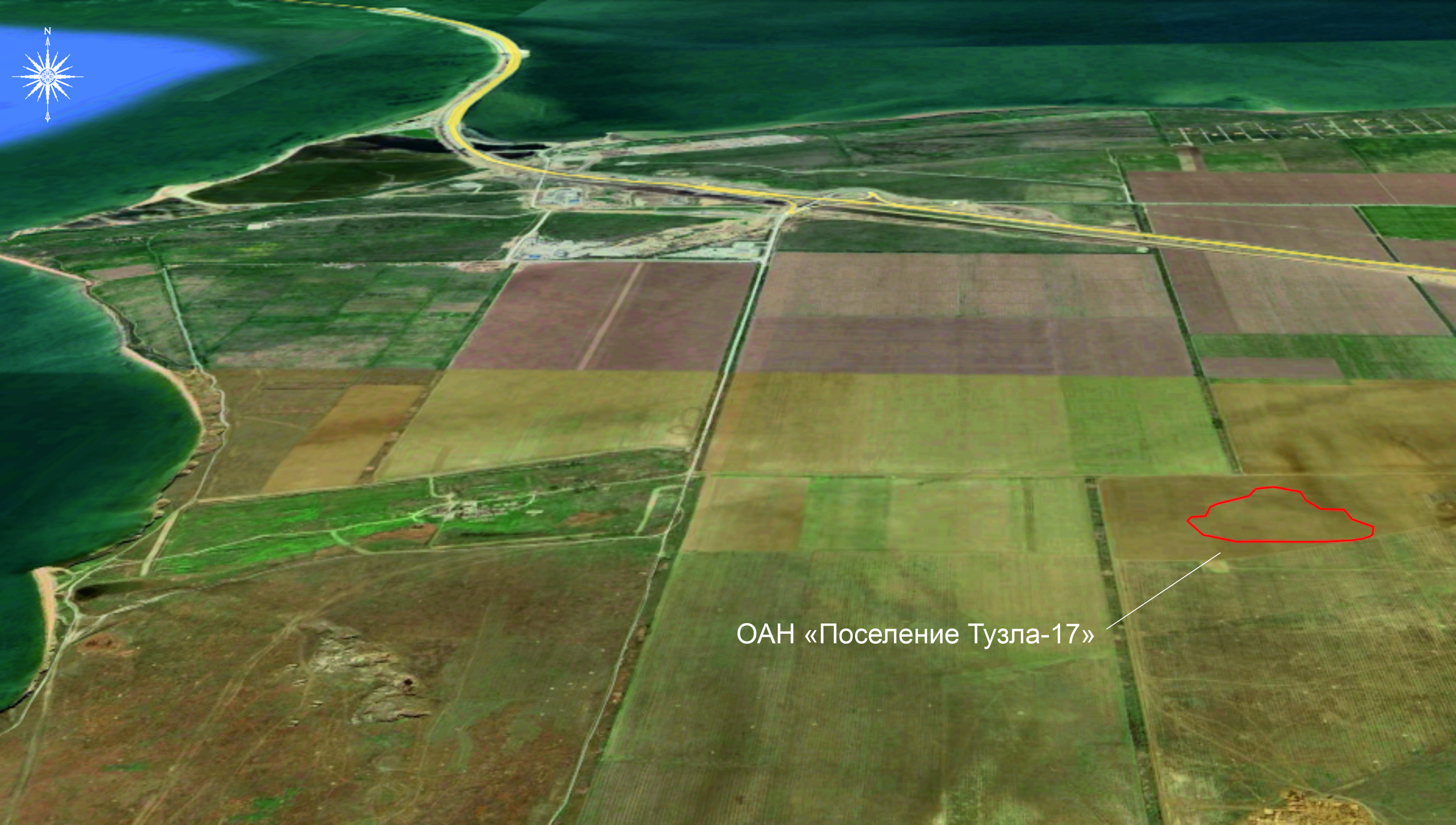 Поселение «Тузла-17» расположено на расстоянии 4 км к юго-западу от южной границы станицы Тамань, в 3,5 км к юго-востоку от южного берега оз. Тузла, в 1 км к востоку от разрушенной МТФ совхоза «Южный». Памятник занимает юго-восточный склон возвышенности, обращенной северо-западным склоном в сторону Черного моря и южным, пологим, – в сторону урочища Холодная Долина. Местность имеет волнообразный рельеф, образованный чередованием гряд и низин, ориентированных в меридиональном направлении. К северу от поселения находится разветвленная балка, вытянутая в широтном направлении, которая в древности являлась водотоком.