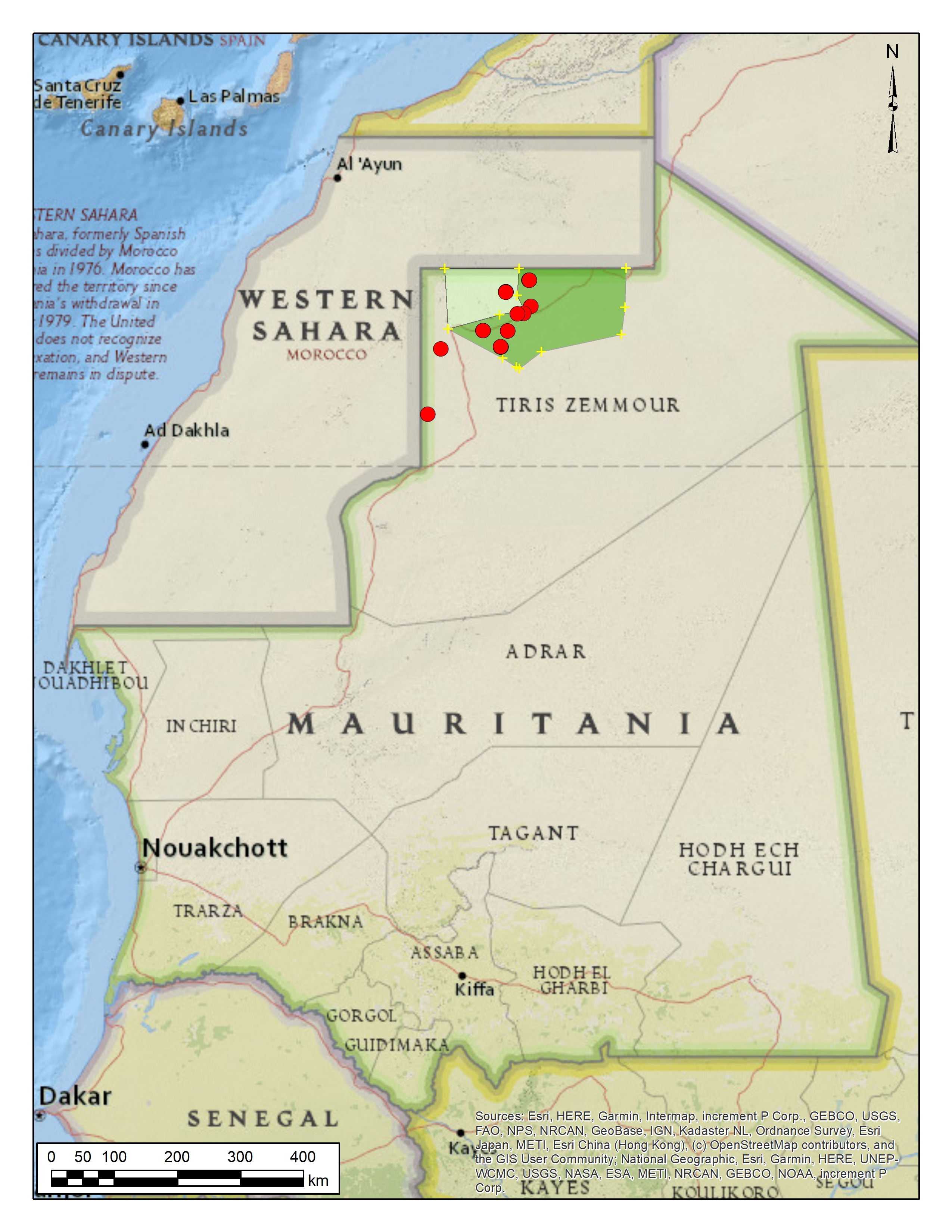Расположение района исследований на карте Исламской Республики Мавритания