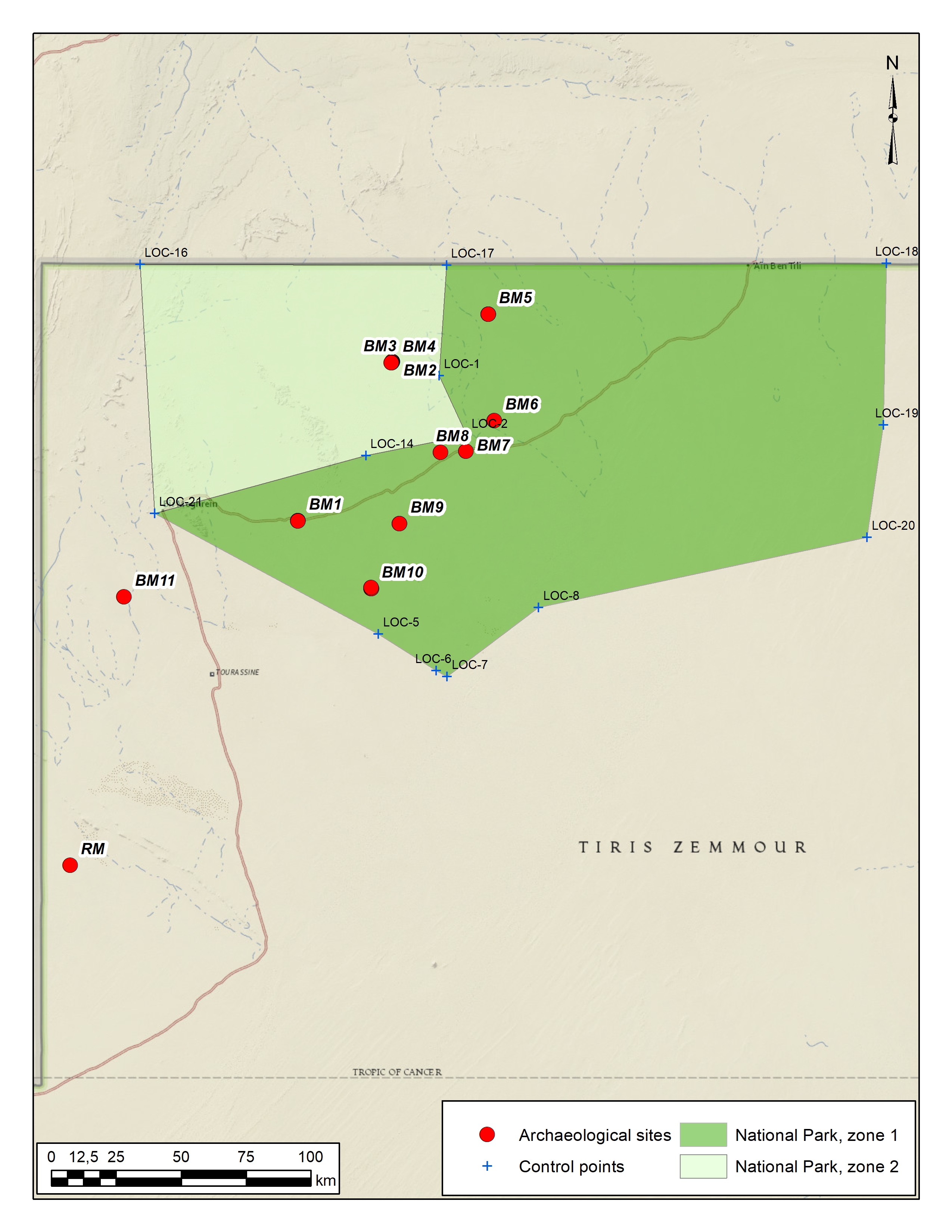 Целью работ текущего сезона было рекогносцировочное обследование территории вокруг г. Бир Могрейн (область Тирис-Земмур), где планируется создание Национального заповедника для сохранения окружающей среды, традиционного образа жизни мобильных скотоводов и объектов культурного наследия. Данная местность никогда не подвергалась систематическому изучению, хотя на обследуемой территории известны археологические памятники – прежде всего объекты наскального искусства и курганные могильники, а также местонахождения каменного века.