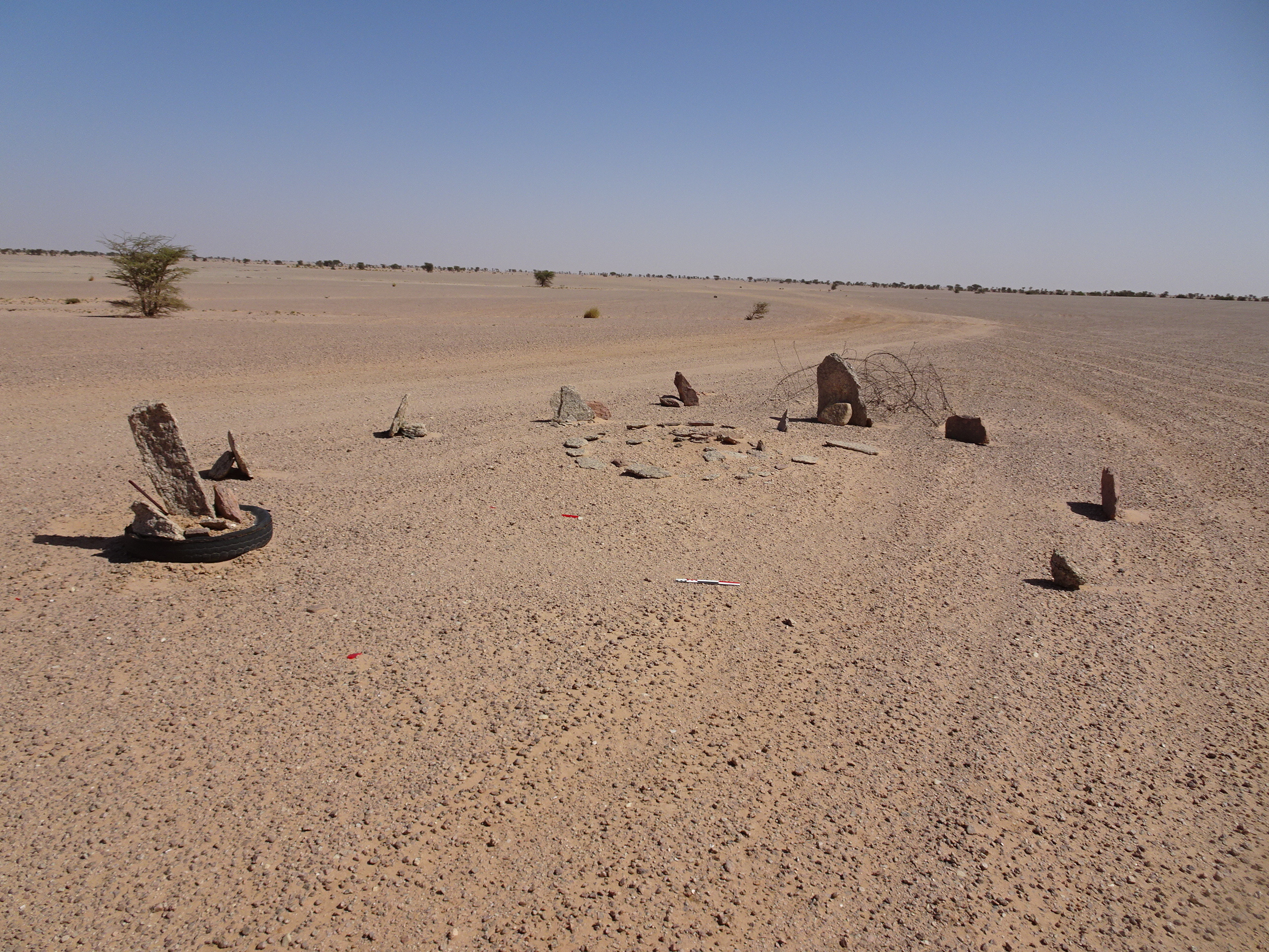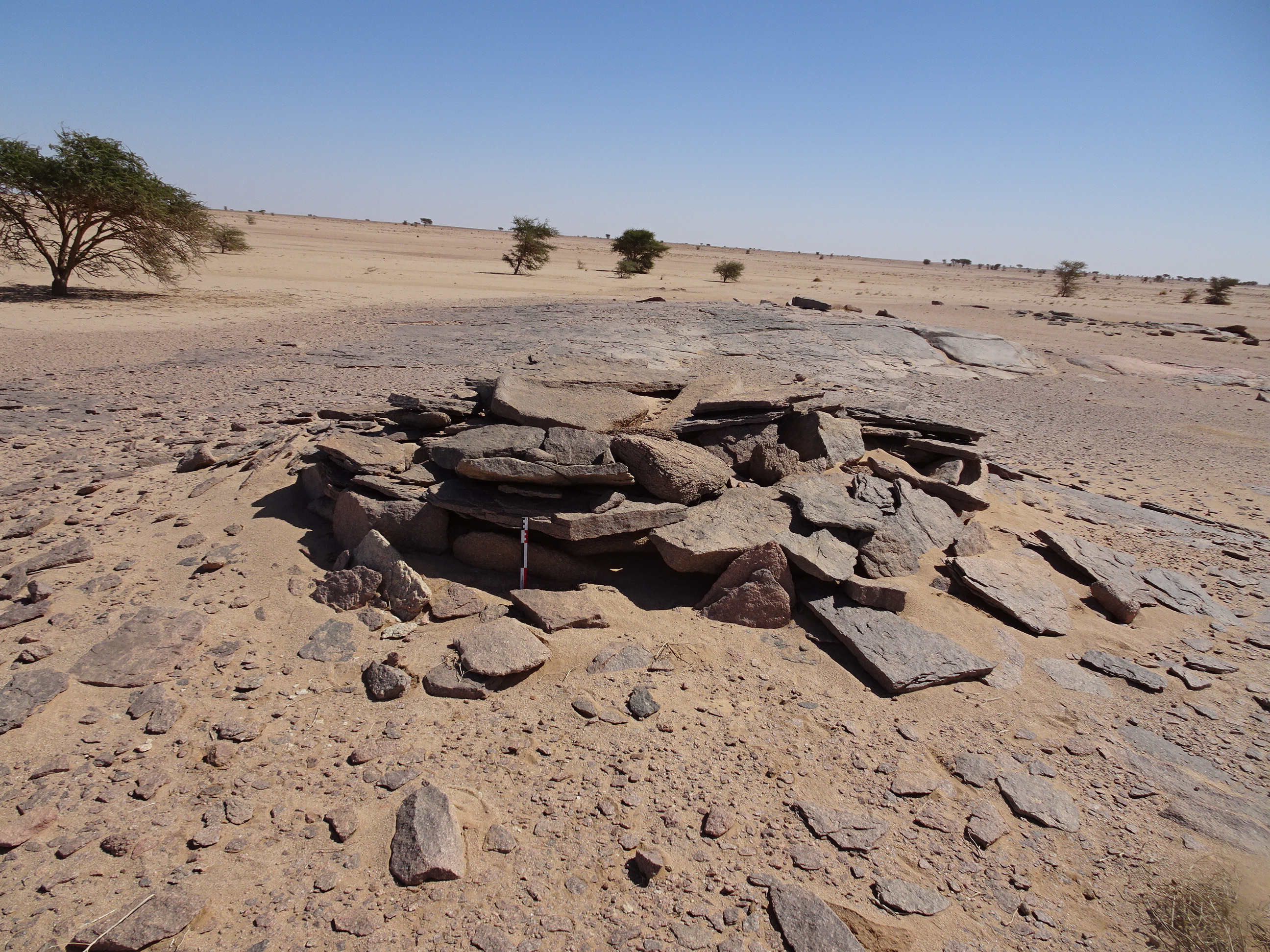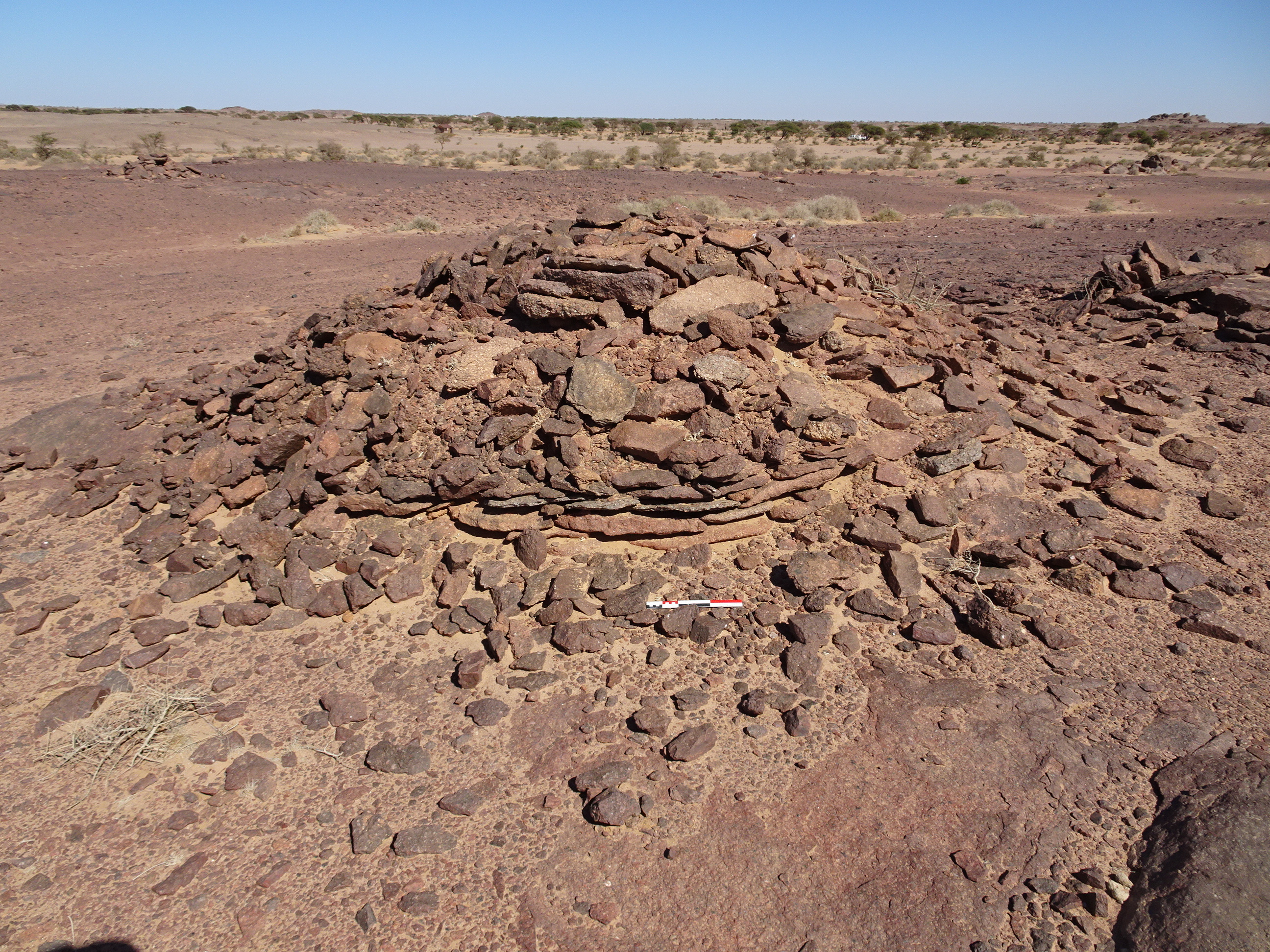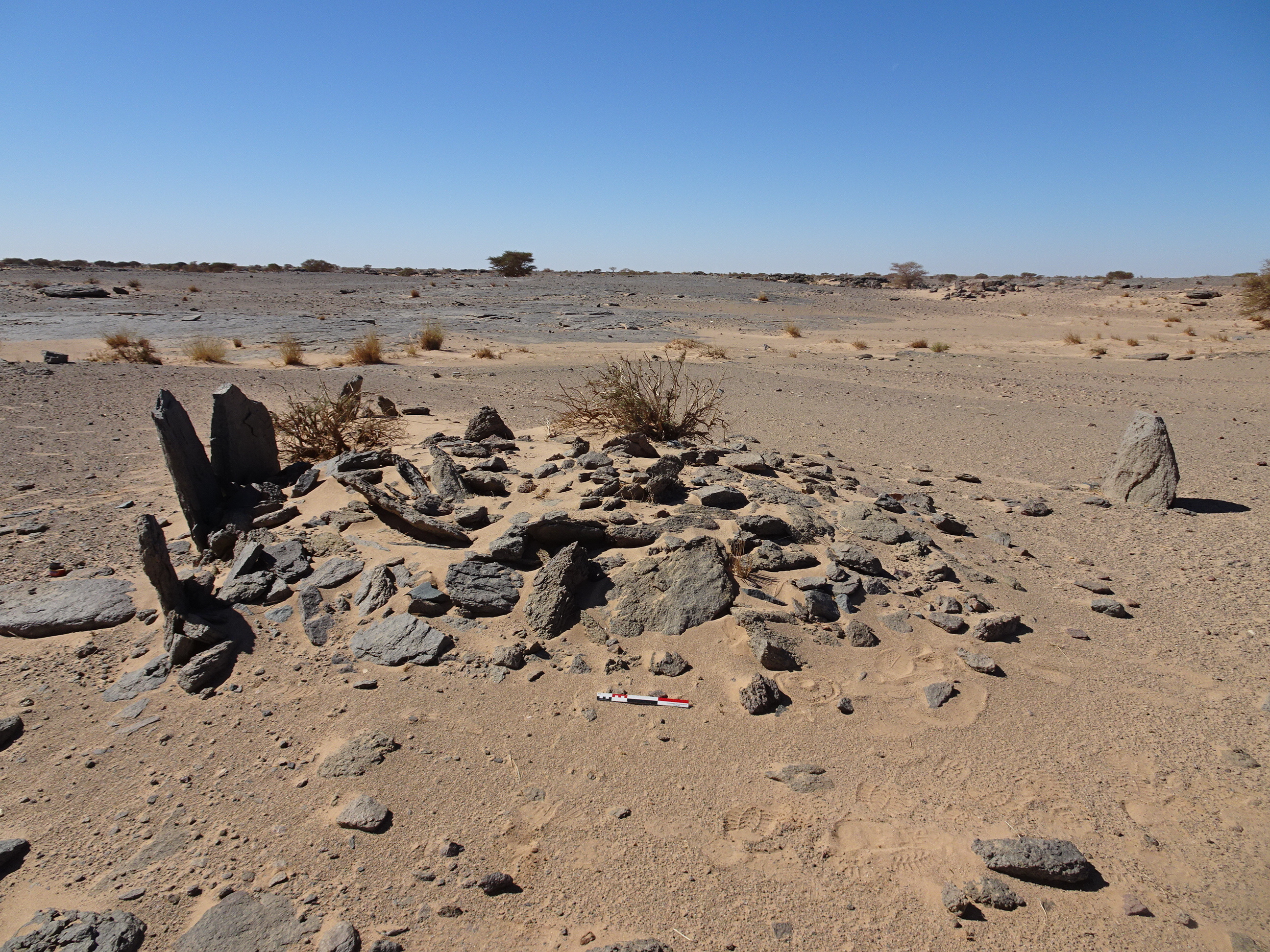 Вид с Ю на круглую каменную структуру у кур. 2 могильника Бир Могрейн 2