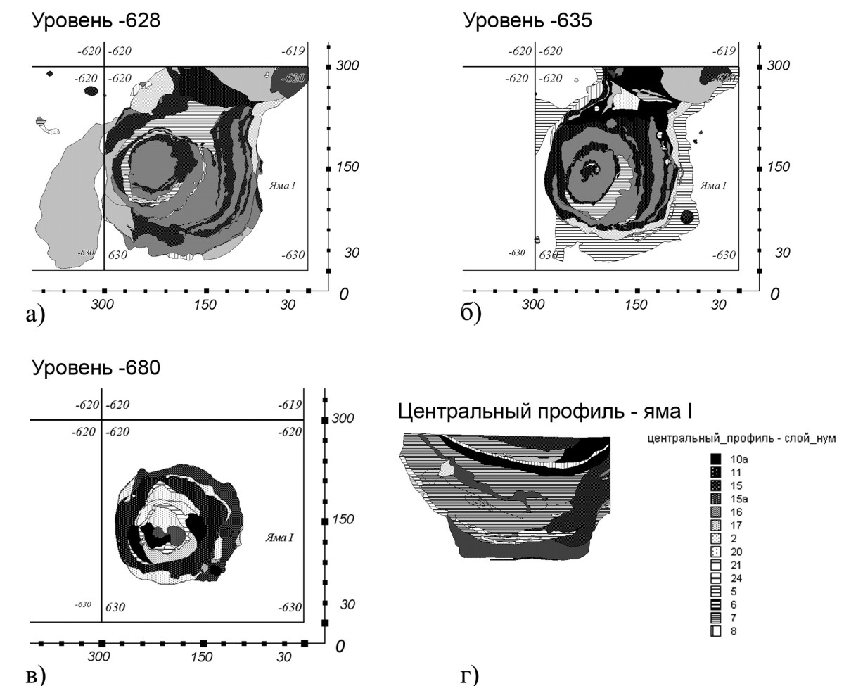 Рис. 1. Оцифрованные плоскостные карты разрезов археологических объектов