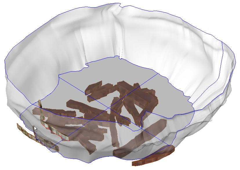 Рис. 9. Моделирование процесса формирования и развития ямы. Этап 2