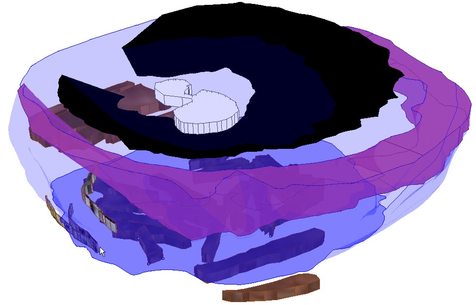 Рис. 10. Моделирование процесса формирования и развития ямы. Этап 3