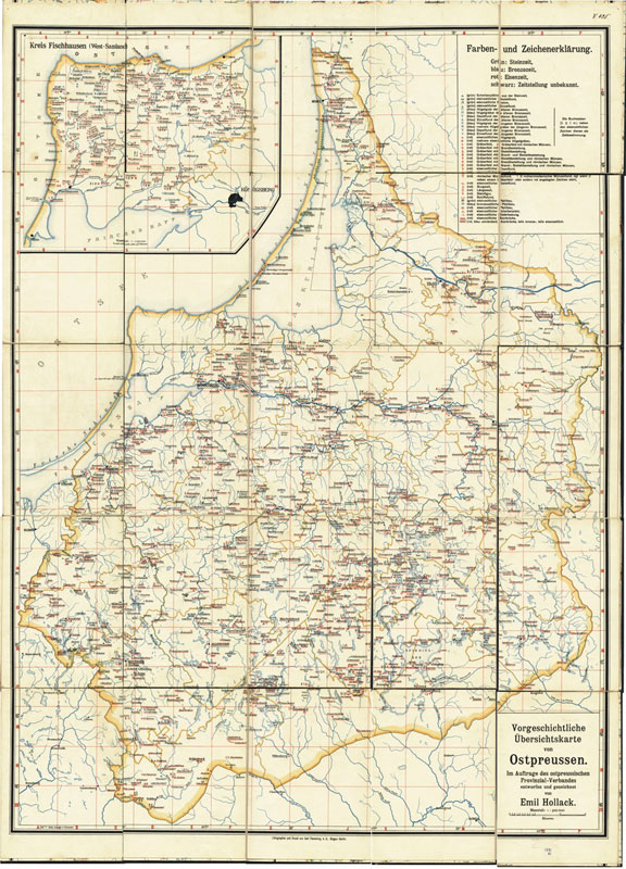Рис. 1. Карта распространения памятников археологии по архивным данным Э. Холлака. 1908 г.