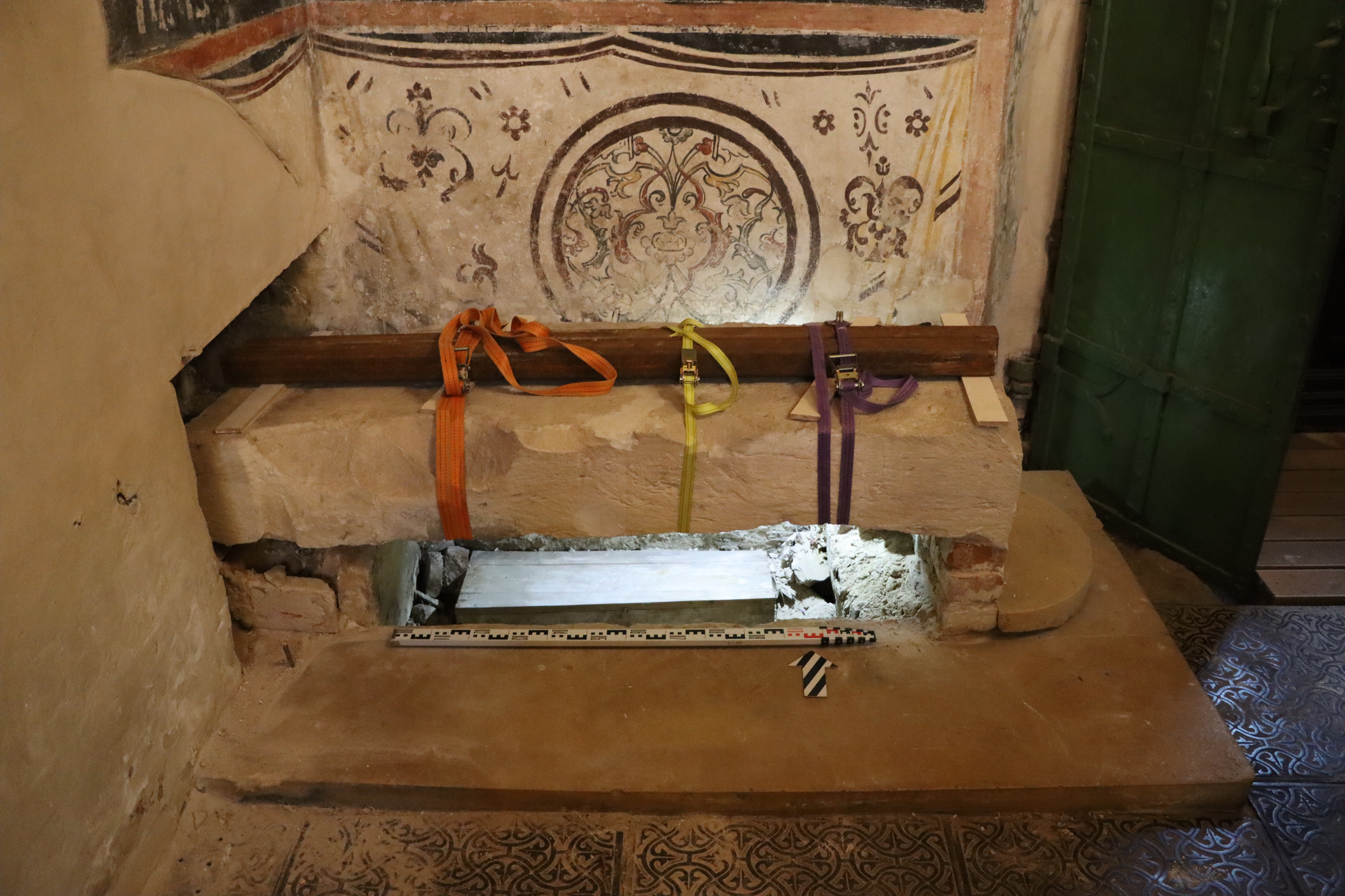 В апреле 2025 г. при помощи специально собранной подъемной конструкции реставраторам удалось временно сместить массивную белокаменную плиту, накрывавшую гробницу митрополита Иллариона. Это позволило археологам в полной мере завершить изучение места погребение суздальского иерарха и примыкающую соборную стену с остатками живописи на ней. Были разобраны строительные завалы, засыпавшие первоначальный саркофаг, сложенный из большемерного кирпича на известковом растворе и перекрытый сводом. Внутри него были обнаружены более пятидесяти оставшихся средних и мелких костей скелета погребенного и многочисленные остатки тканей облачения.