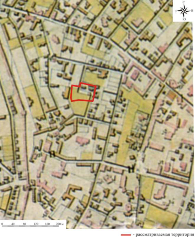 Но гуща застройки вдали от дорог, между большими улицами, известна гораздо меньше. Важность, актуальность исследования района Воздвиженки коренится и в недостаточном внимании к нему в сравнении с другими зонами города. Нам почти не известна археология обширных московских дворов и городских усадеб, столь ярко отразившихся в пейзажной живописи XIX в. Отметим, что между Большой Никитской и Воздвиженской размещаются два давно утраченных, но значимых для русской истории монастыря: св. Никиты и Воздвижения Креста.