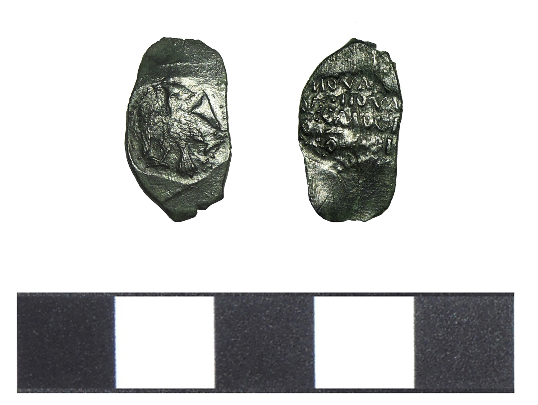 Представлена среди находок и эпиграфика: на фрагменте кастрюльки из чернолощеной керамики прочерчена плохо читаемая надпись в технике граффито, из двух слов.