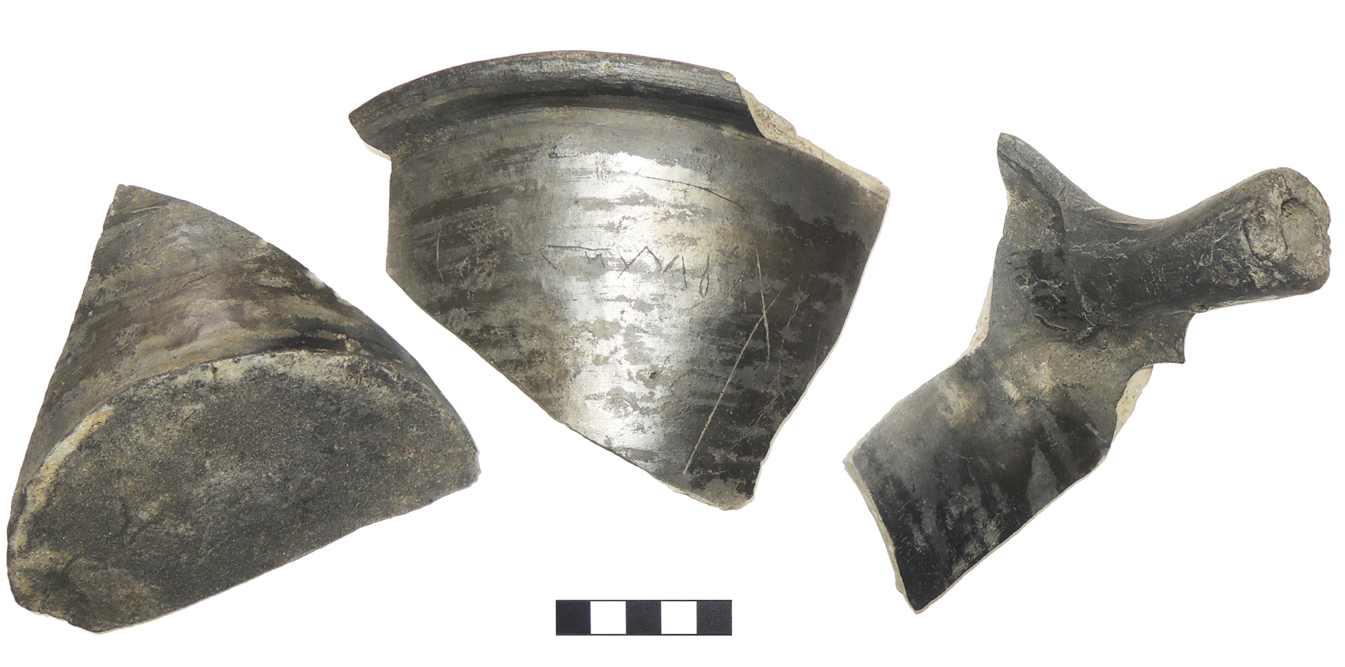 Кастрюльки чернолощеной керамической с прочерченной надписью в технике граффито фрагмент