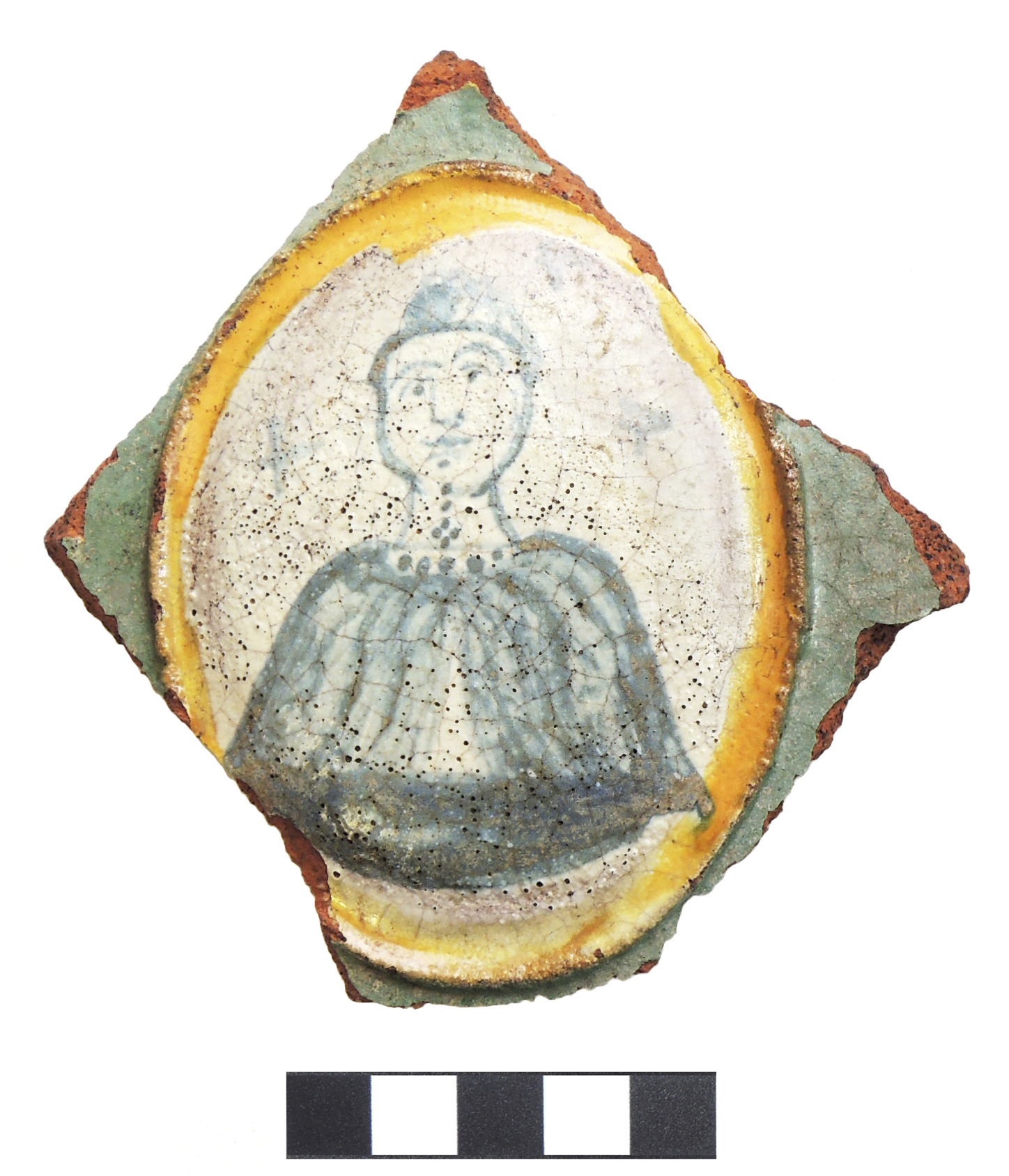 Изображение женского «портрета» на рельефном полихромном печном изразце
