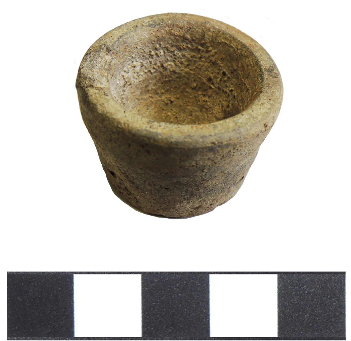 Интересной находкой, обнаруженной в комплексе второй половины XVI в., является мерная керамическая чашечка объемом не более 15 мл.