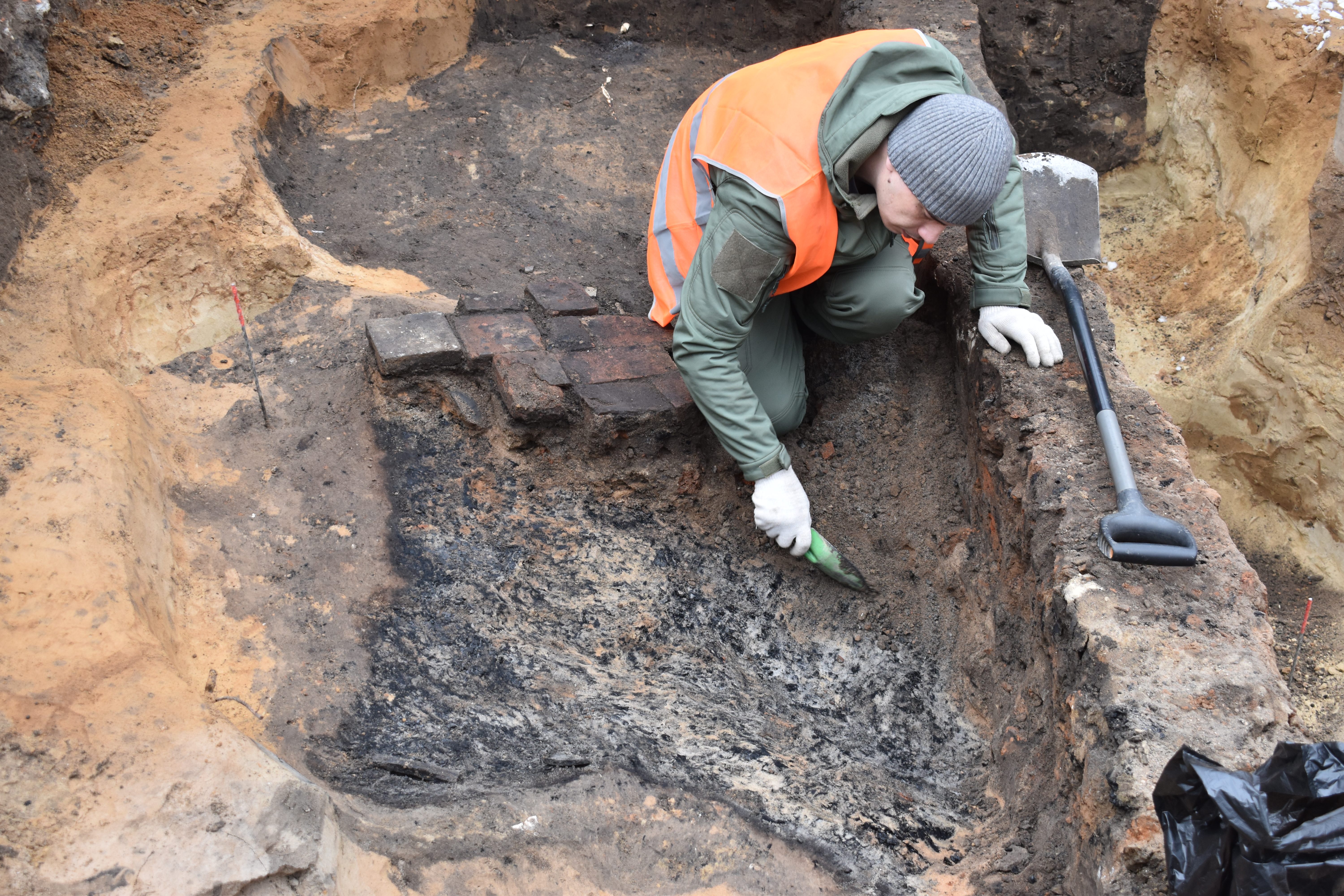 Археологические раскопки проведены на площади 712 кв. м. Раскоп был расположен на месте демонтированного до начала работ здания 1917 г., построенного на фундаментах предшествующей застройки.