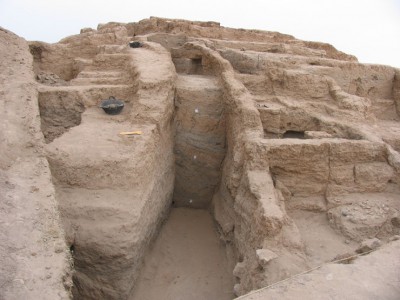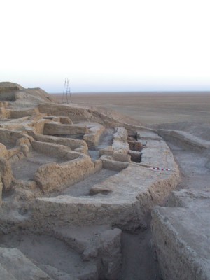 Западный конец стены упирался в целую систему массивных взаимосвязанных конструкций. Мы полагаем, что они служили дамбой для защиты от разливов р. Ханзир, затоплявшей во время весенних паводков и обильных осенних и зимних дождей всю прилегающую территорию, серьезно угрожая поселению.
