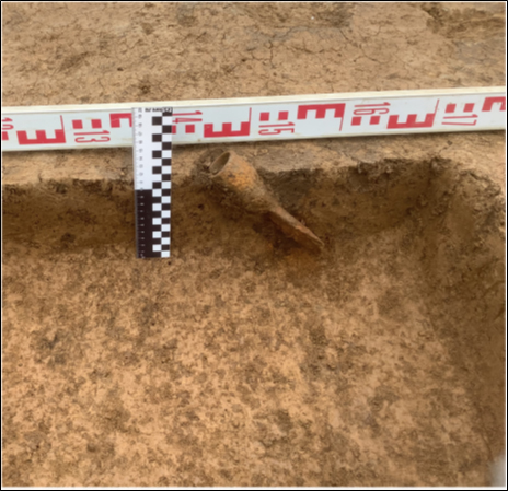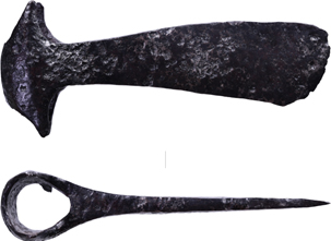 Исследование двух наконечников копий, топора и ножа из состава «оружейных комплексов» методом рамановской спектроскопии, выполненное в ЦКП ИА РАН (оператор Е.Я. Зубавичус), выявило на их поверхности патину из гематита, формирующуюся под воздействием высоких температур. На одном из наконечников дротиков зафиксирован прикипевший фрагмент ошлакованной лепной керамики. Таким образом, можно полагать, что все эти предметы были подняты с мест трупосожжений.