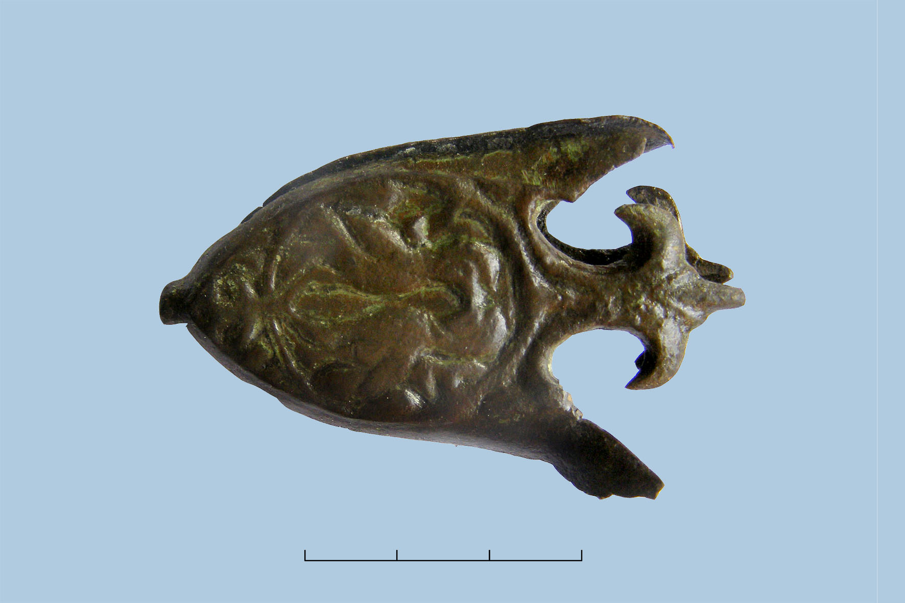 Наконечник ножен из могильника Холмы. раскопки Самбийской экспедиции, 2010 г.