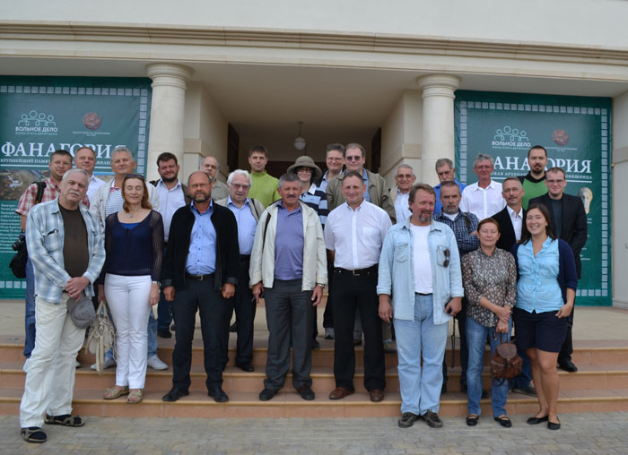 Участники международного симпозиума и первые гости научно-культурного центра "Фанагория"