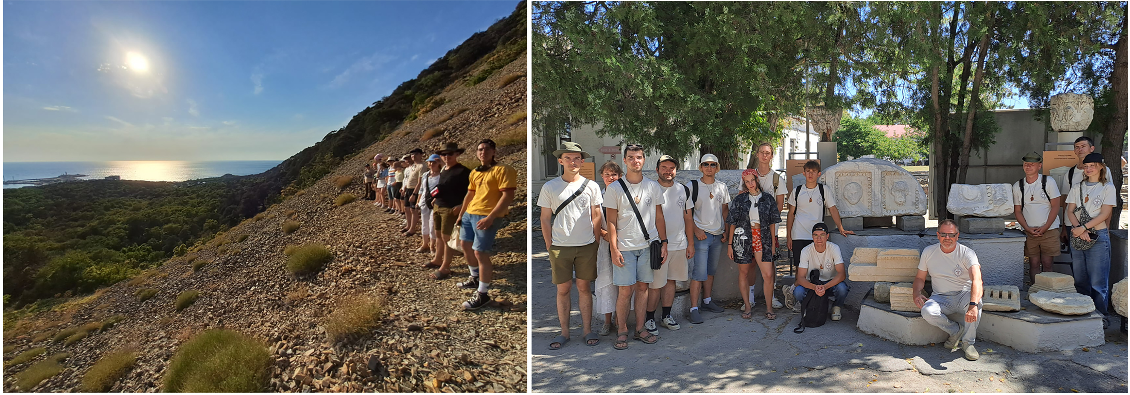 Не менее обширной была полевая археологическая программа Летней молодежной археологической школы. В северо-восточной мысовой части Раевского городища исследованы культурные слои эллинистического и раннеримского времени, здесь обнаружены свидетельства катастрофической гибели комплекса в раннеримское время и фундаментальные кладки сооружений III–II вв. до н.э. Среди находок обширный массовый керамический материал, бронзовая боспорская монета и сероглиняный двухручный канфар эллинистического времени, а также изделие из трубочной кости.
