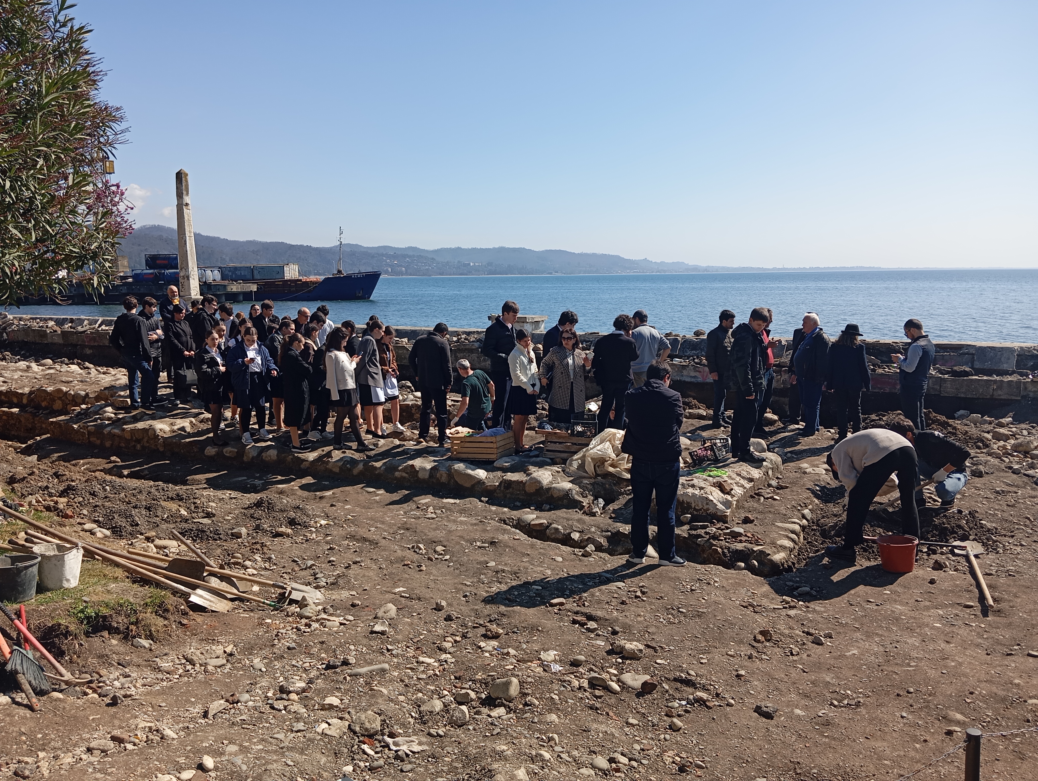 Археологическая конференция не ограничилась только докладами школьников: для ребят и учителей была организована экскурсия на раскопки Себастополиса – римской крепости, остатки которой находятся на набережной г. Сухума и исследования которой в это время проводились силами отдела археологии АбИГИ АНА, АГУ и Управления по охране историко-культурного наследия Республики Абхазия в рамках проекта государственной программы по реконструкции набережной.