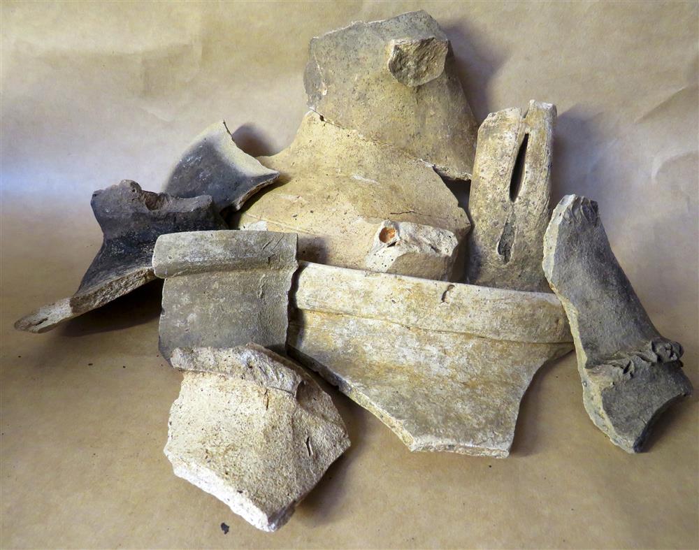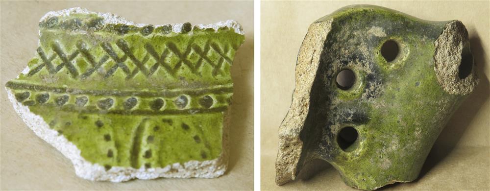 Слева – белоглиняная гладкая керамика XVI–XVII вв. Справа – белоглиняная грубая керамика XVI–XVII вв.