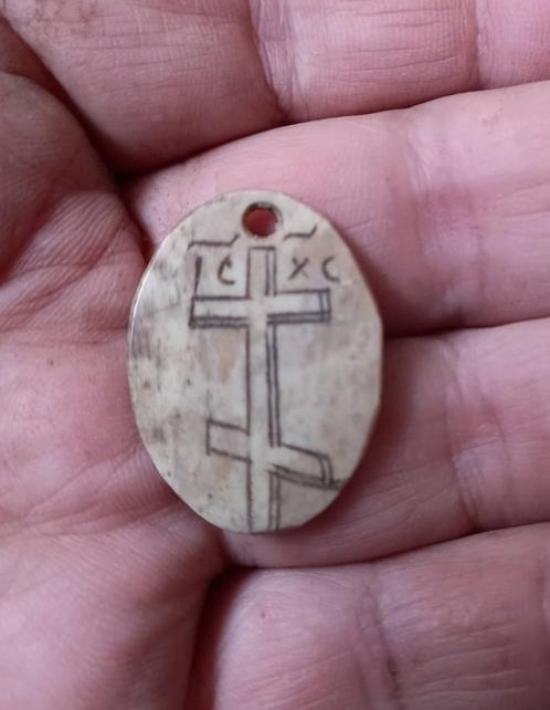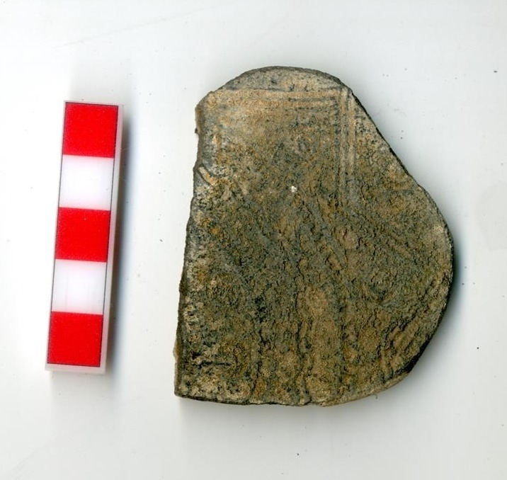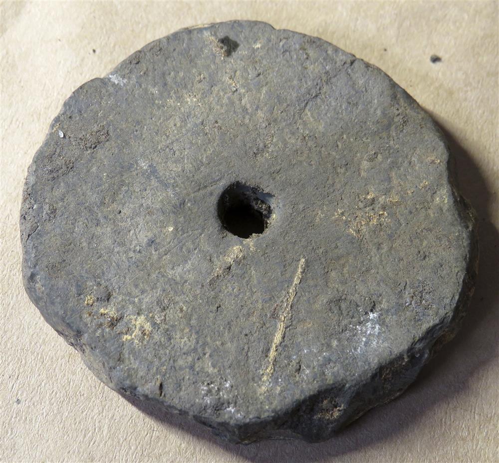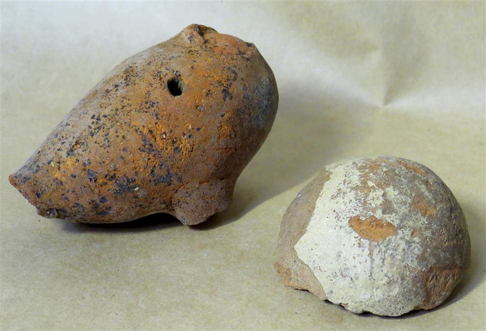 Слева – граффито на стенке сосуда. Справа – пряслице из керамики, XVII–XVIII вв.