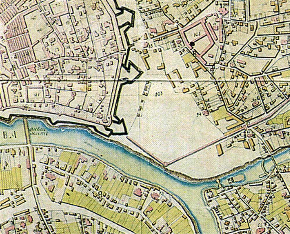Нужно ли понимать дело так, что на планах XVII в. городская застройка показана условно, то есть ошибочно, и настоящее освоение началось только с появлением проекта Воспитательного дома, а ранее затрагивались только края этого луга или сада? Или она в очередной раз исчезла, была, так сказать, смыта наводнениями? Ведь Васильев луг – обширная низина вдоль Москва-реки, едва поднимающаяся от ее ложа к террасам и взгоркам Старых садов и Кулишек. Река здесь – ключевое слово, это прибрежный район, в половодье луг/сад затопляло. Ранняя застройка часто жалась к воде и росла от Кремля над устьем Неглинной, по левому берегу, к устью Яузы, уже с XII–XIII вв.