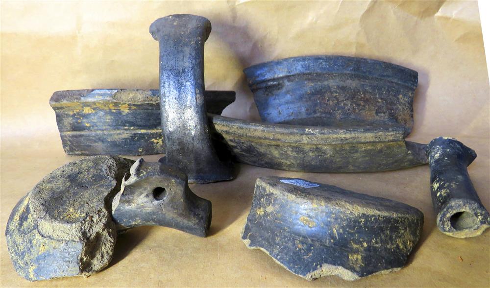Слева – оплавленная керамика из сгоревшей постройки XVI–XVII вв. Справа – чернолощеная посуда, XVI–XVII вв.