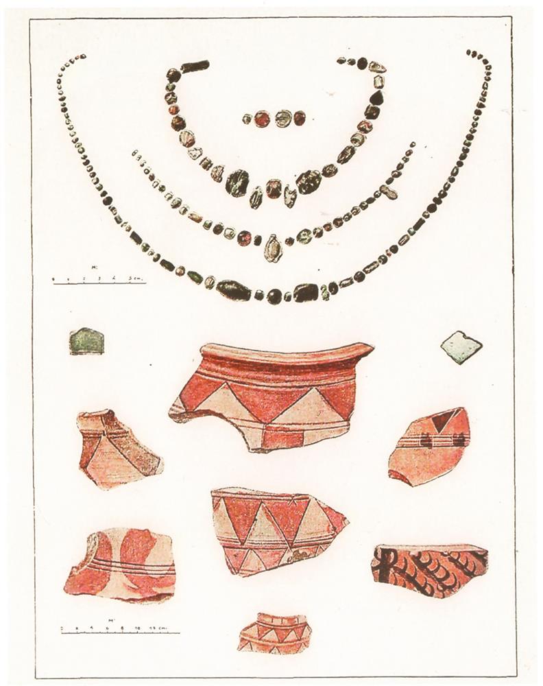 Расписная керамика и бусы из античных и афригидских памятников Хорезма. Джанбас-кала, Тешик-кала, Топрак-кала, Аяз-кала и др. 1940 г.