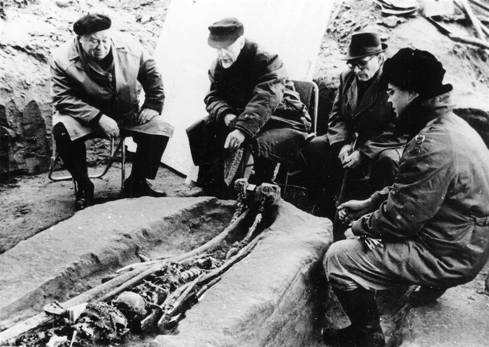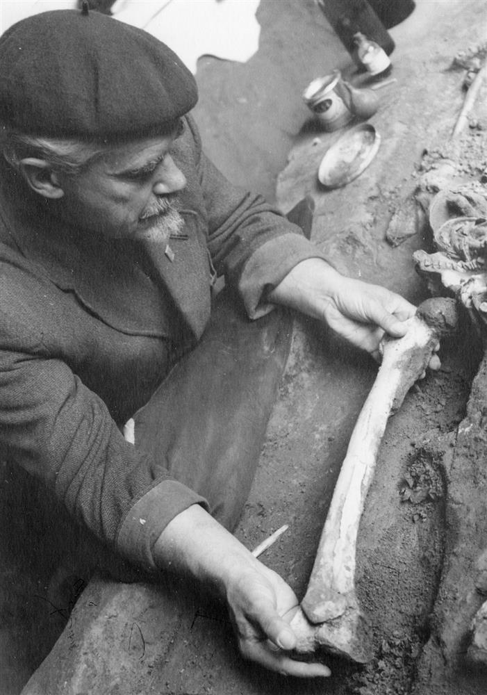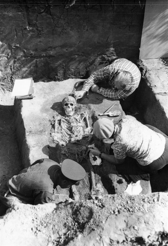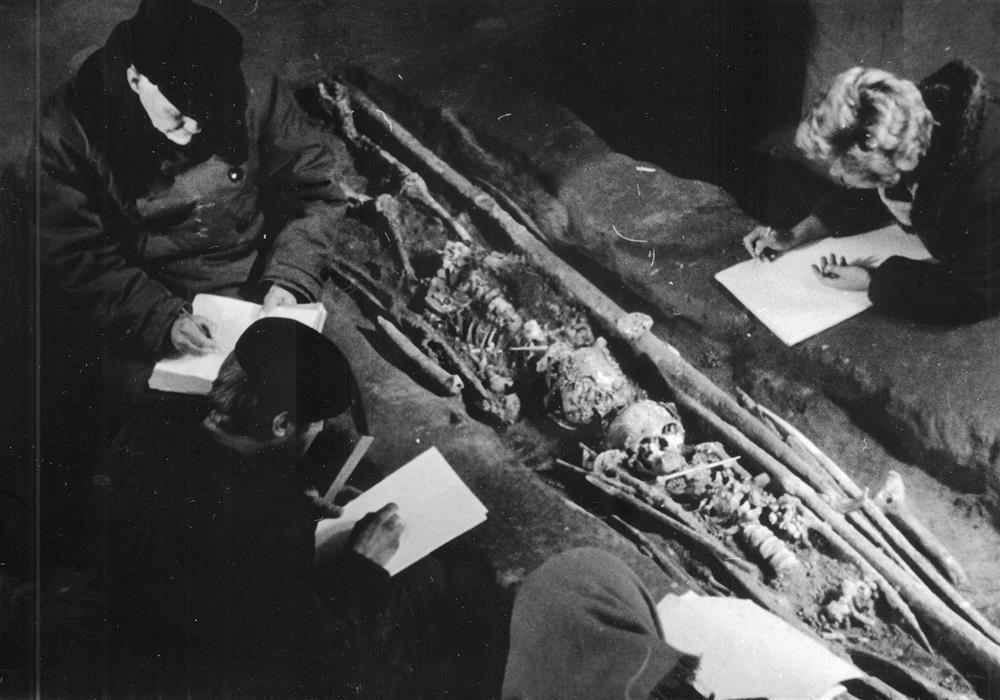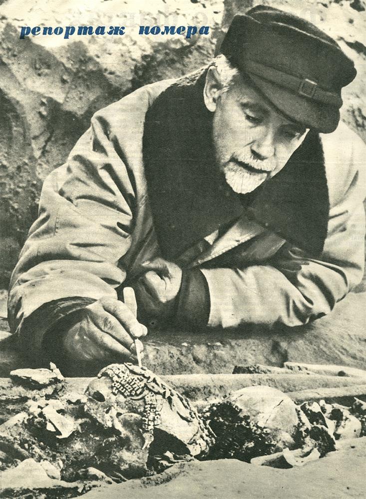 О.Н. Бадер за расчисткой детского погребения в Сунгире