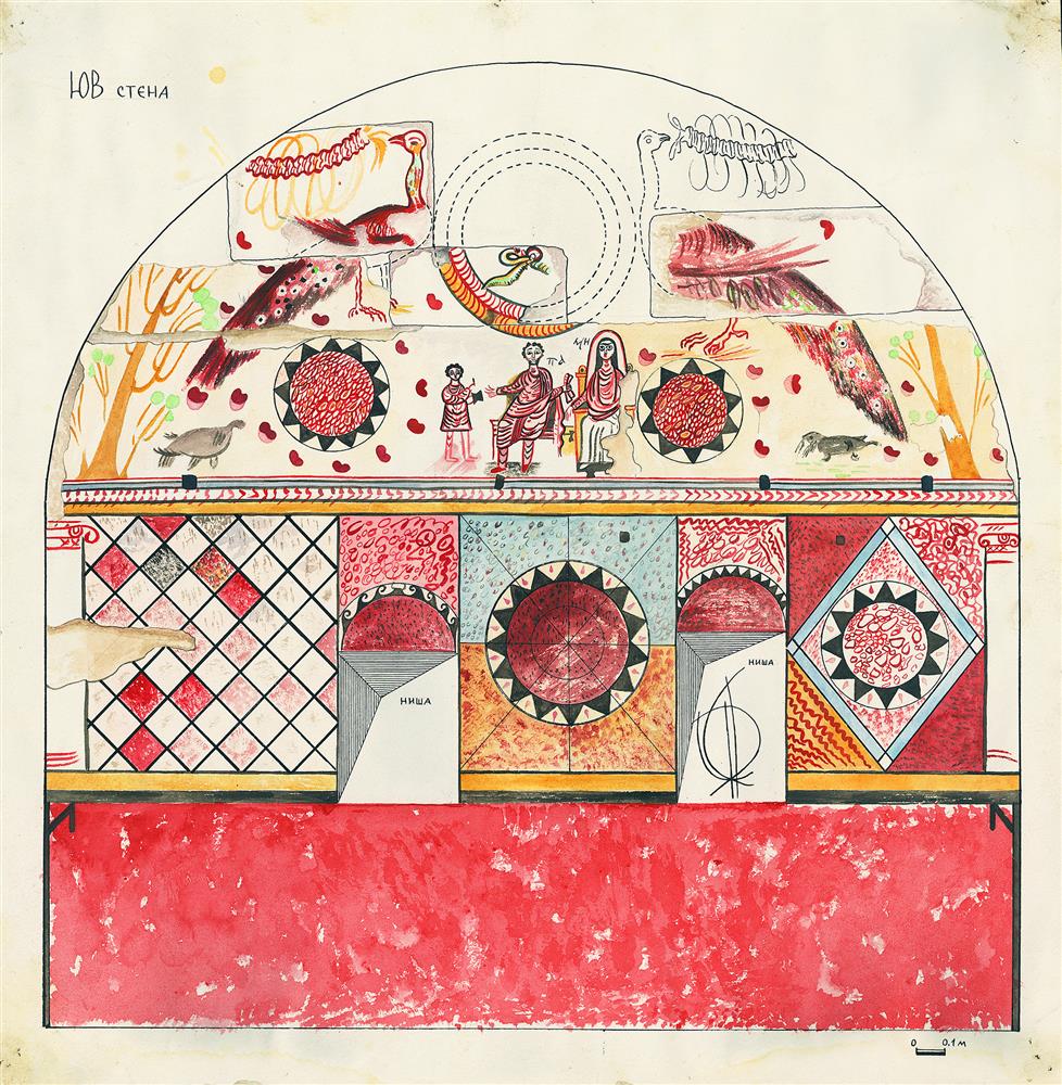 Схема росписи стены напротив входа в склеп I/1975 г. Некрополь Горгиппии, III в. н.э.