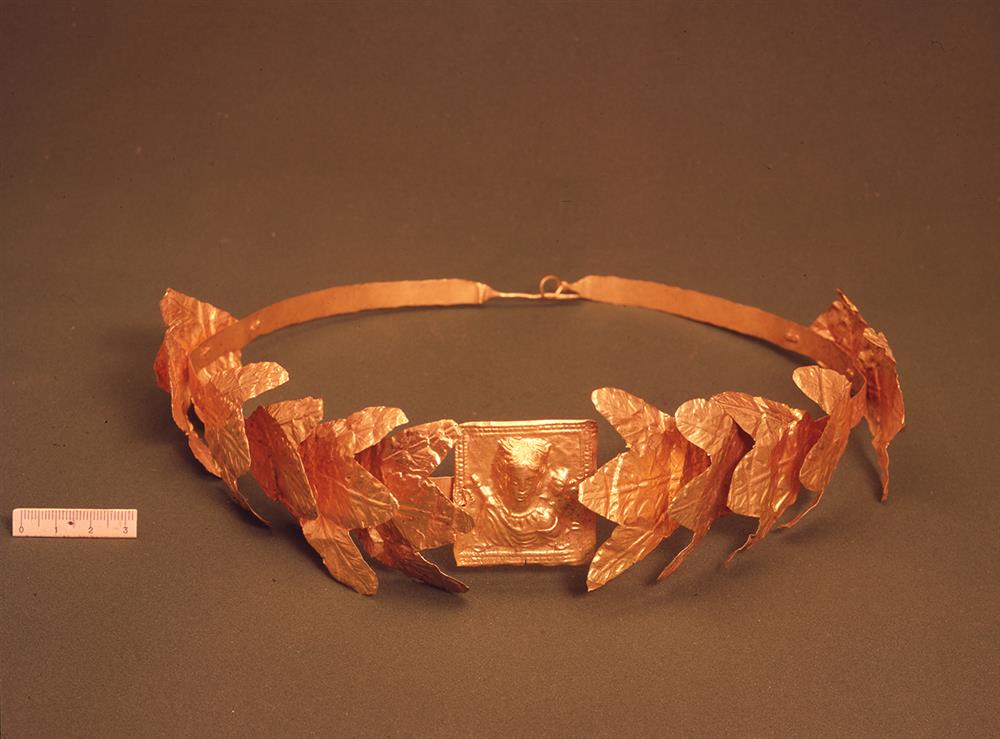 Золотой венок с Афродитой Уранией на центральном щитке. Некрополь Горгиппии, склеп II/1975 г., III в. н.э.