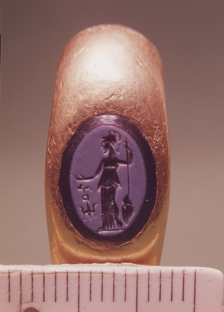 Гемма в литом золотом перстне. Афина Парфенос и тамга. Некрополь Горгиппии, склеп I/1975 г., III в. н.э.