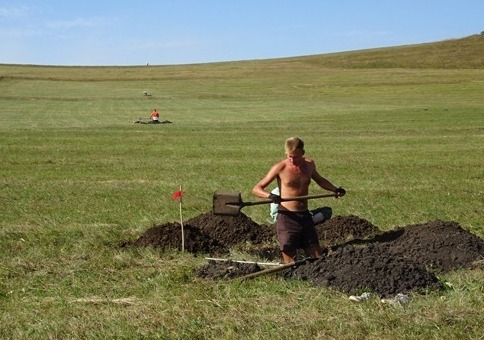 Слева: Процесс работ на почвенных разрезах в окрестностях укрепления Нарт-Башинское