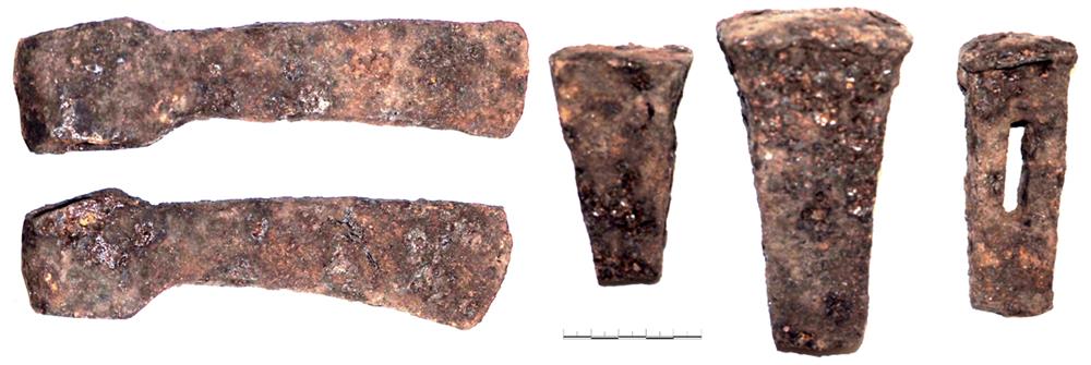 Топоры и наковальни из клада V–VII вв., найденного на поселении у с. Никольское в Курской области