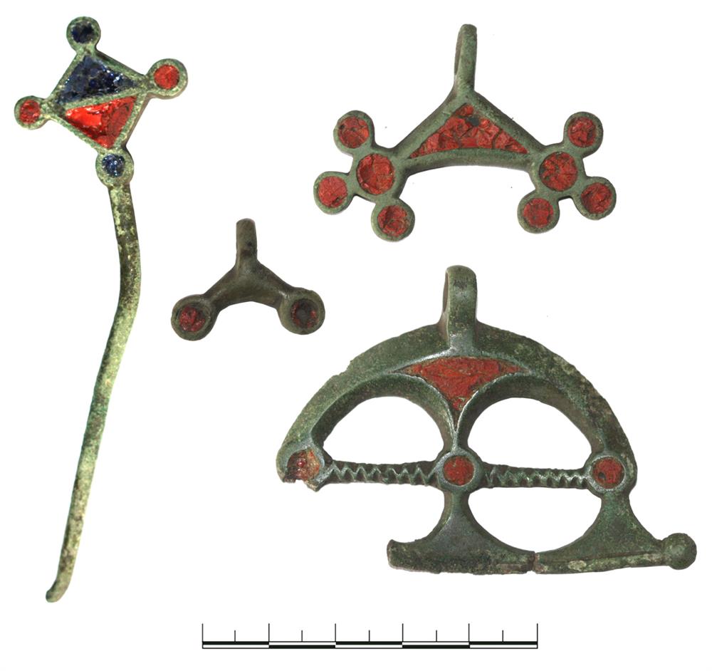 Справа: вещи круга выемчатых эмалей III в. с поселения Плехово в Курской области
