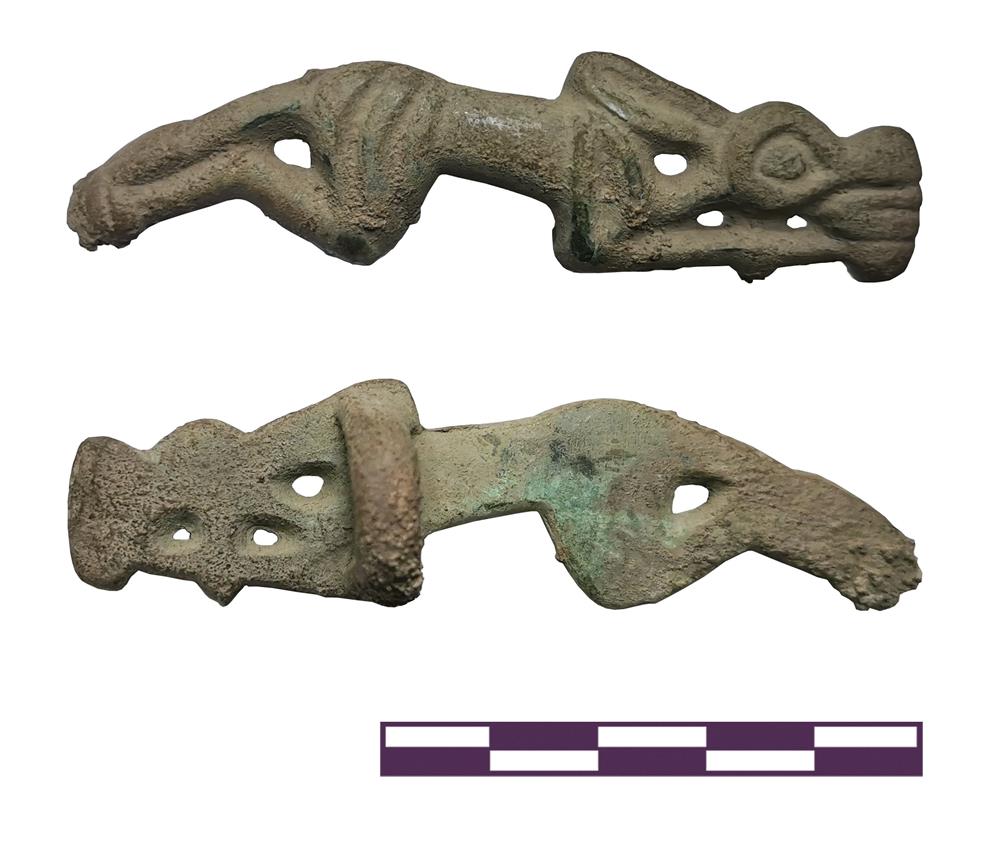 Справа: Курган 4. Бронзовая уздечная пронизь
