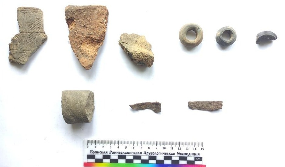 Исследования верхнего слоя Хотылёво 2 были продолжены на пункте Д, который планомерно с небольшими перерывами изучается с 2019 г. В предыдущие годы была изучена часть жилой зоны поселения, расположенная на юго-востоке распространения горизонта киевской культуры. В этот период было изучено 6 жилых построек – типичные полуземлянки с опорным столбом в центре, а также исследован ряд хозяйственных ям. В результате предыдущих исследований было собрано достаточно большое количество индивидуальных находок – пряслица, фрагменты железных ножей, рыболовных крючков, глиняных дисков, а также более десяти целых форм сосудов.