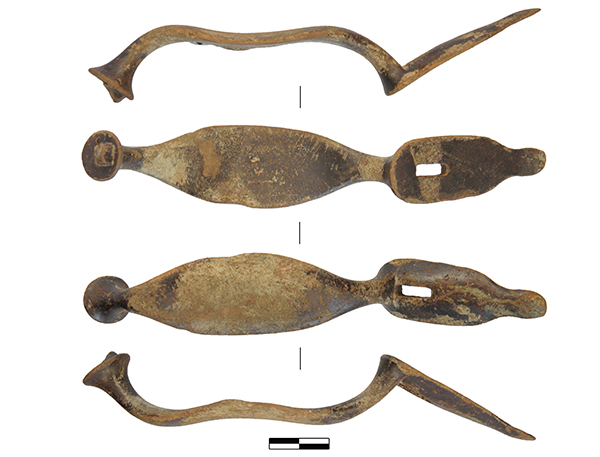 Слева: Накладная деталь амуниции "Рожок". Справа: фрагмент штыка
