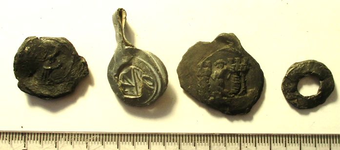Справа: Западноевропейские текстильные пломбы XV в. и XVII в.