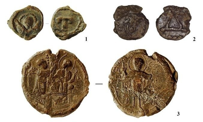1–2 – пломбы свинцовые дрогичинского типа (2016 и 2021 гг.) ; 3 – печать княжеская висячая (2016 г);