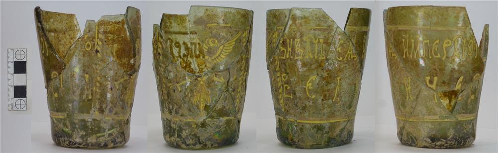 Среди них – подписной стакан с текстом в две строки («Виватъ Ея Императорскаго // Величества»), относящийся, следовательно, к периоду правления императриц, 1725–1796 гг.